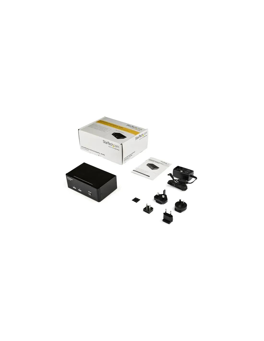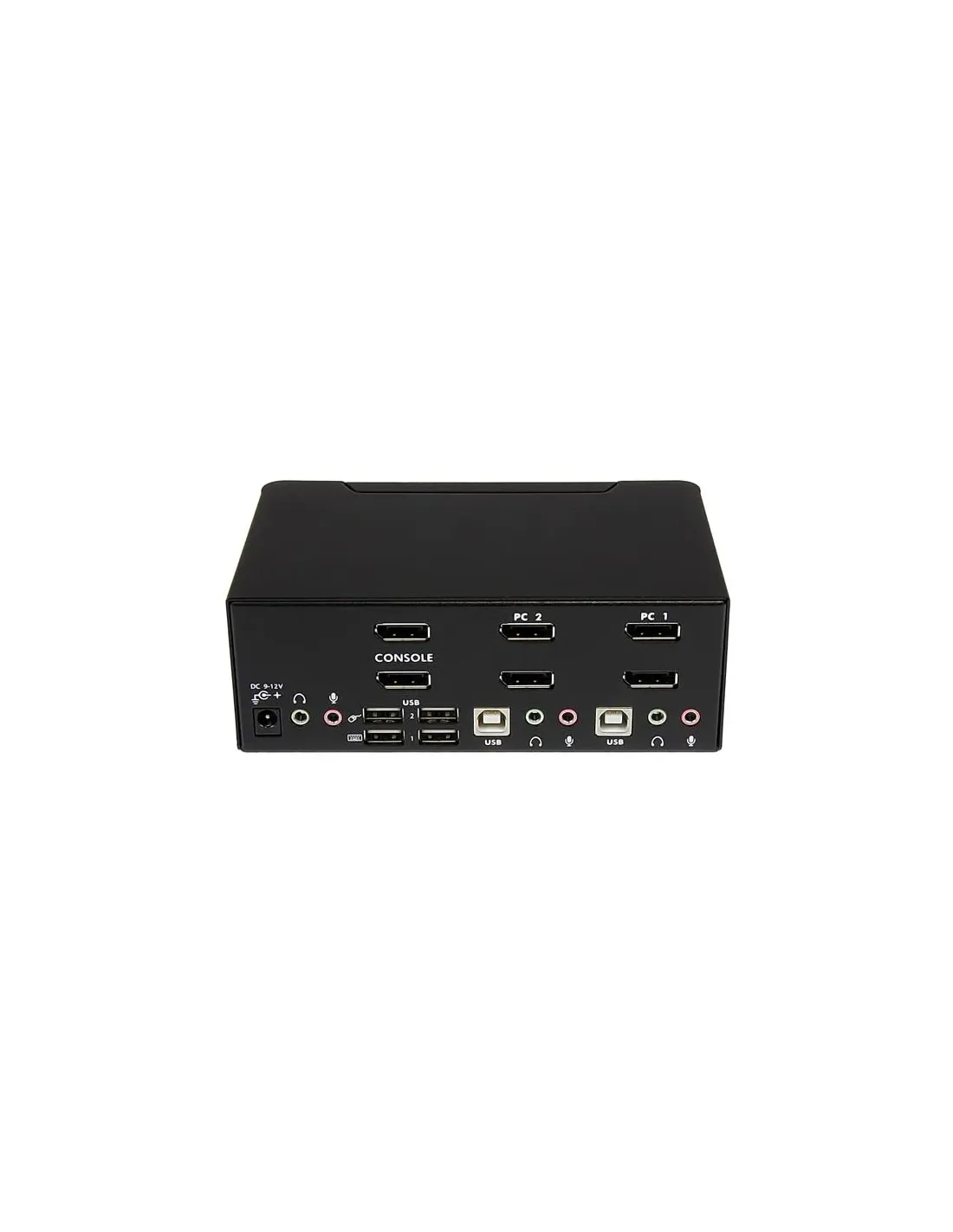 Características del StarTech.com Switch Conmutador KVM de 2 Puertos DisplayPortEl **switch KVM de 2 puertos DisplayPort de StarTech.com** está diseñado para profesionales que necesitan controlar dos ordenadores desde un único conjunto de periféricos. Ideal para entornos de trabajo multitarea, estaciones de control o usuarios que alternan entre sistemas sin complicaciones. Este dispositivo permite gestionar equipos con resoluciones de hasta **4K a 60 Hz**, integrando también control de audio y conexión USB en una sola solución compacta y fiable.Control eficiente de dos sistemas con un solo setEste conmutador KVM permite alternar fácilmente entre dos ordenadores utilizando el mismo **monitor DisplayPort, teclado, ratón y dispositivos USB**. Su diseño de sobremesa y su estructura robusta lo convierten en una opción práctica tanto para uso profesional como técnico.Permite controlar 2 ordenadores con un solo usuarioInterfaz de teclado/ratón: USBConmutador KVM/audio/USB con caja de sobremesaResolución 4K y conectividad ampliadaGracias a la compatibilidad con resoluciones de hasta **3840 x 2160 a 60 Hz**, el switch garantiza una calidad de imagen nítida para tareas exigentes. Además, incorpora puertos para audio y periféricos USB, lo que permite un entorno de trabajo más completo y versátil.Soporte para resolución 4K a 60 Hz6 puertos DisplayPort para conexiones de vídeo4 puertos USB 2.0 Type-A para periféricos adicionalesAudio independiente y alimentación externaEste modelo incluye conectores independientes para **auriculares y micrófono**, facilitando la comunicación o el uso de contenido multimedia entre sistemas. Su alimentación se gestiona mediante un adaptador externo, asegurando estabilidad en sesiones prolongadas.3 entradas para micrófono mini-jack3 salidas de audio mini-jack para auricularesTransformador externo 12 V incluidoDiseño compacto y normativa internacionalCon un diseño de sobremesa de dimensiones reducidas, el conmutador se adapta fácilmente a escritorios profesionales. Cumple con las normativas internacionales como RoHS y FCC, y está disponible para distintos mercados, incluyendo Europa y Norteamérica.Dimensiones: 16,1 × 10 × 5,75 cmPeso: 1,2 kgCumple con normativas WEEE, RoHS, FCC, entre otrasOtras especificacionesCantidad de usuarios locales KVM: 1Interfaces adicionales: 2 x USB Type-BAccesorios incluidos: 4 patas de gomaTemperatura de funcionamiento: de 0 °C a 40 °CTemperatura de almacenamiento: de -20 °C a 60 °CHumedad operativa: 0 % - 80 %Modelos compatibles: P/N SVA12M2NEUA, SVA12M5NA
