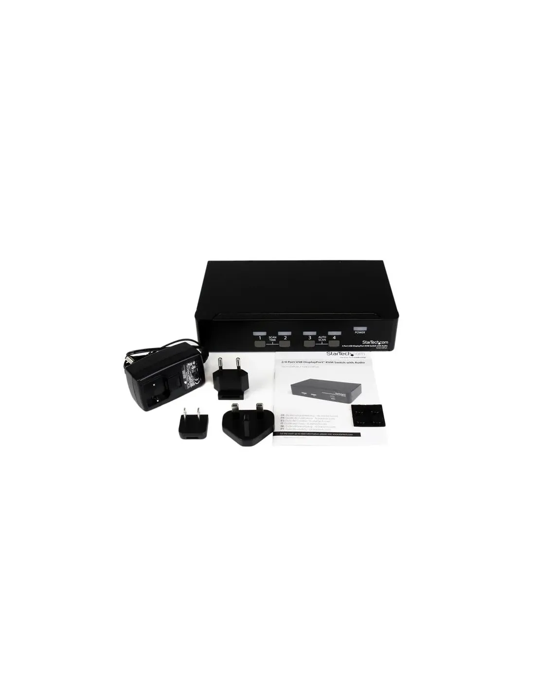 StarTech.com Conmutador Switch KVM 4 puertos Vídeo DisplayPort DP Hub Concentrador USB 2.0 Audio - 2560x1600, 3840 x 2400 Pixeles, Negro