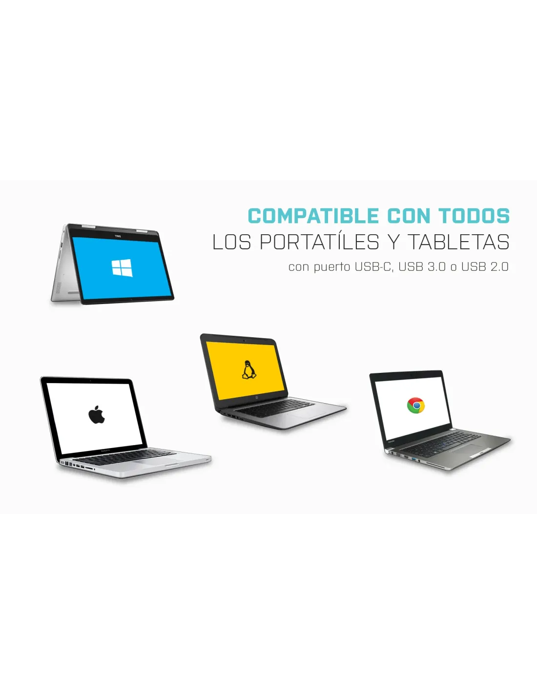 Estación de acoplamiento universal que se puede utilizar con cualquier portátil ya que viene con un cable de 100 cm con USB 3.0 y un adaptador USB-C / Thunderbolt 3 conectado.La estación soporta hasta 2 monitores externos que se conectan por medio de puertos HDMI. 6 puertos USB, conexión fiable y rápida con el internet, gracias al integrado puerto LAN, sin que falte el soporte de la salida y entrada de audio.La estación de almacenamiento se puede instalar en la posición vertical (exige menos espacio en la mesa de trabajo), u horizontal en tal caso, puede servir de base cómoda de su notebook.Conecte hasta dos monitores externosSe dispone de dos puertos HDMI2 puertos USB 3.0 (uno de ellos, con el soporte de carga rápida) para la transmisión rápida de datos4 puertos USB 2.0 le posibilitan conectar fácilmente sus dispositivos y periféricos USB.El Ethernet RJ-45 de gigabit facilita una conexión a Internet fiable, robusta y de velocidad alta con el soporte de 10/100/1000 Mbps de velocidadSalida de audio y entrada de audio independientes (micrófono)Soporte Windows 10, macOS X, Android, ChromeOS y Linux
