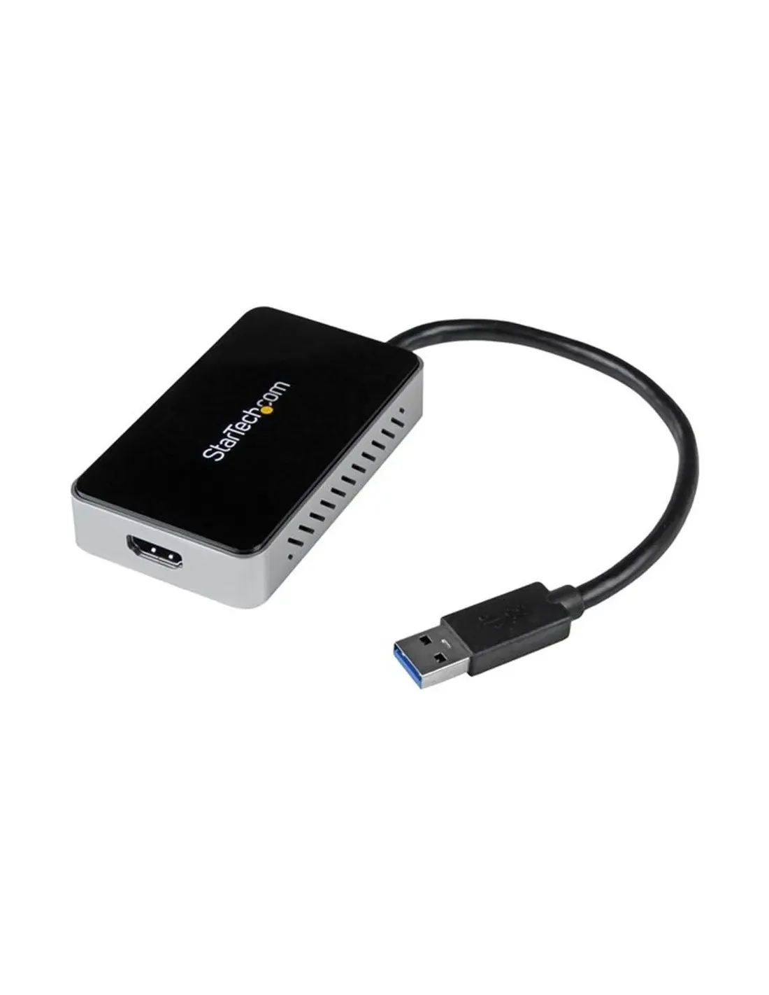 Características del StarTech.com Adaptador de Vídeo Externo USB 3.0 a HDMIEl **adaptador de vídeo externo de StarTech.com** es una solución compacta y versátil para usuarios que necesitan **expandir la conectividad de su portátil o PC** sin complicaciones. Diseñado especialmente para entornos profesionales o de oficina, permite **agregar una salida HDMI adicional** y un **puerto USB 3.0** a través de una sola conexión USB, sin necesidad de instalar una tarjeta gráfica interna.Expansión de vídeo fácil y eficienteIdeal para presentaciones, multitarea o configuraciones de doble monitor, este adaptador permite conectar una pantalla HDMI con resolución de hasta **1920 x 1200 píxeles**, proporcionando una experiencia visual clara y fluida. Además, incluye un adaptador HDMI a DVI, lo que amplía las opciones de compatibilidad con diferentes tipos de pantallas.Puerto HDMI tipo A (19 pines) con soporte Full HDResolución máxima: 1920 x 1200Incluye adaptador HDMI-DVI externoConectividad adicional mediante USB 3.0Este dispositivo también funciona como **hub USB 3.0**, ofreciendo un puerto adicional de alta velocidad para conectar periféricos como ratones, teclados o memorias USB. Gracias a su alimentación por USB, no requiere adaptador externo, lo que lo hace ideal para entornos móviles o escritorios con espacio limitado.1 puerto USB 3.0 Tipo A (9 clavijas)Compatible con dispositivos USB 3.0 y 2.0Alimentación directa desde el puerto USBDiseño compacto y listo para usarSu formato reducido y peso ligero lo convierten en una herramienta práctica para profesionales en movimiento. Se suministra con un cable USB integrado de 16 cm y cumple con las normativas **FCC y RoHS**, garantizando fiabilidad y compatibilidad en diferentes entornos de trabajo.Dimensiones: 8.5 x 4.9 x 1.7 cmPeso: 66 gCable USB integrado (16 cm)Amplia compatibilidad con sistemas WindowsFunciona con una gran variedad de sistemas operativos Windows, desde XP hasta Windows 10, tanto en versiones de 32 como de 64 bits. Su instalación es sencilla y no requiere hardware adicional.Sistemas compatibles: Windows XP / Vista / 7 / 8 / 8.1 / 10 (32/64 bits)Compatible con los modelos de cables StarTech indicadosCumple con estándares TAA para entornos gubernamentalesOtras especificacionesColor: NegroPeso del embalaje: 244 gDimensiones del embalaje: 21.3 x 14.6 x 3.8 cmDiseñado para modelos: HDDVIMM3, HDMIDVIMM10, HDMIDVIMM6, HDMM10, HDMM12, HDMM15, HDMM1MP, HDMM25, HDMM2M, HDMM2MP, HDMM3, HDMM3MP, HDMM50, HDMM50A, HDMM6, HDPMM50