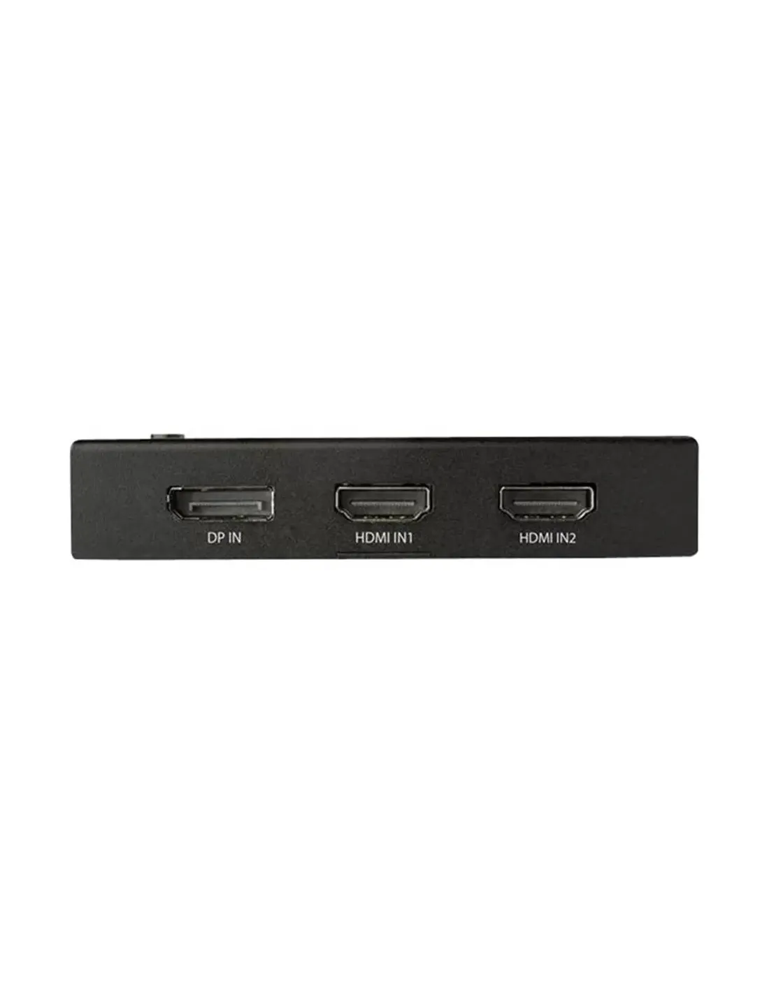 Características del StarTech.com 4 Port HDMI Video Switch - 3x HDMI & 1x DisplayPort - 4K 60HzEl **interruptor de vídeo/audio StarTech de 4 puertos** está diseñado para usuarios que necesitan gestionar varias fuentes de vídeo con salida HDMI en un solo monitor o proyector 4K. Es ideal para entornos profesionales, salas de reuniones o estaciones de trabajo multimedia que requieren **cambio rápido y de alta calidad entre fuentes HDMI y DisplayPort**. Su soporte para resoluciones Ultra HD y audio 7.1 lo convierte en una solución versátil y compacta.Conmutación sencilla entre múltiples fuentes de vídeoEste switch de sobremesa permite alternar entre **3 entradas HDMI y 1 DisplayPort** hacia una salida HDMI común, manteniendo la calidad 4K a 60 Hz sin latencia perceptible. Perfecto para conectar ordenadores, consolas, reproductores o cualquier fuente digital.3 entradas HDMI + 1 entrada DisplayPort1 salida HDMI con soporte 4K a 60 HzIncluye mando a distancia y receptor IR para control remotoCalidad de imagen y sonido superiorEl dispositivo es compatible con **resolución 4K Ultra HD** y transmite **audio multicanal de hasta 7.1 canales**, ofreciendo una experiencia audiovisual envolvente para presentaciones, contenidos multimedia o entretenimiento.Resolución de salida: hasta 3840 x 2160 píxeles a 60 HzCompatible con audio digital de 7.1 canalesSoporta cambio de fuente sin pérdida de señalDiseño compacto y fácil integraciónSu formato de **sobremesa ultra compacto** facilita su integración en cualquier escritorio o entorno audiovisual. Incluye accesorios de montaje, patas de goma y cumple con normativas internacionales de seguridad y medio ambiente.Dimensiones: 10 cm x 6.6 cm x 2 cmPeso: 300 g (400 g con embalaje)Cumple con normas FCC, RoHS, WEEE, RCMAlimentación y funcionamiento fiableFunciona mediante un **transformador externo** y está preparado para funcionar en un amplio rango de temperaturas y condiciones de humedad, garantizando estabilidad en el tiempo.Voltaje de entrada: CA 120/230 VRango de temperatura operativa: 0 °C a 45 °CHumedad operativa: 10% - 90%Otras especificacionesIndicadores LED de estado de puerto y alimentación1 entrada de audio adicionalLocalización del producto: Norteamérica, Europa, Reino Unido, AustraliaAccesorios incluidos: mando a distancia, receptor IR, 2 soportes, 2 tornillos, 4 patas de gomaDimensiones del embalaje: 16 cm x 12.5 cm x 6.5 cm