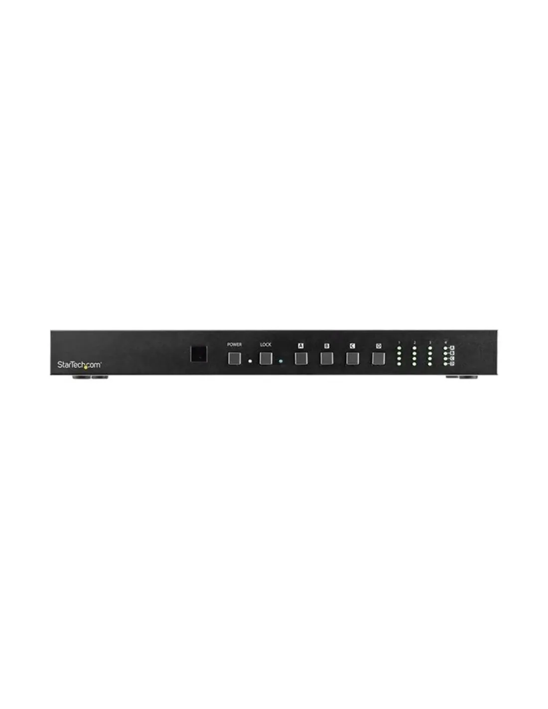Características del StarTech.com Switch Multiplicador de Vídeo HDMI 4K 60HzEl **multiplicador de vídeo HDMI StarTech.com** está diseñado para ofrecer una solución profesional en la distribución de señal HDMI con **resolución 4K a 60 Hz**, ideal para entornos de presentaciones, salas de control, comercios, centros educativos y eventos en vivo. Gracias a su arquitectura de **4 entradas y 4 salidas HDMI**, permite una gestión flexible y eficiente de varias fuentes y pantallas, todo desde un único dispositivo compacto y montable.Distribución de vídeo 4K con máxima nitidezEste switch permite trabajar con señales de vídeo de **hasta 3840 x 2160 píxeles a 60 Hz**, garantizando una calidad de imagen profesional y sin pérdidas. Perfecto para aplicaciones que requieren **alta definición, fluidez y sincronización precisa**.Resolución máxima: 3840 x 2160 a 60 Hz (Ultra HD 4K)Subtipo: HDMI, con soporte de vídeo/audio digitalIdeal para monitores profesionales y proyectores de alta definiciónConectividad versátil y gestión avanzadaGracias a sus **4 puertos de entrada y 4 de salida HDMI**, este conmutador ofrece una distribución flexible de contenido desde varias fuentes hacia varias pantallas. Además, incluye un puerto serie **RS-232 DB-9** para integrarse con sistemas de control y automatización profesionales.4 x entradas HDMI4 x salidas HDMI1 x interfaz serie RS-232 (DB-9)Diseño práctico y alimentación fiableEl switch viene con **kit de montaje en bastidor**, ideal para instalaciones en armarios de telecomunicaciones o racks AV. Funciona mediante un **transformador externo** compatible con voltaje de **CA 120/230 V**, lo que facilita su adaptación a distintos entornos eléctricos.Formato sobremesa con kit de montaje incluidoAlimentación mediante adaptador externoVoltaje de entrada: CA 120/230 VOtras especificacionesTipo de dispositivo: Interruptor de vídeo/audio - 4 puertos