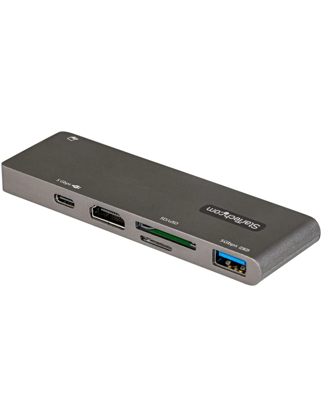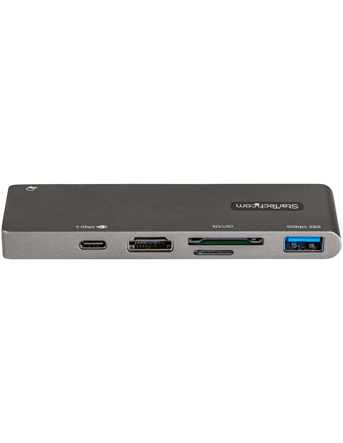 Características del StarTech.com Adaptador Multipuertos USB-C para MacBook Pro/AirEl adaptador multipuerto de **StarTech.com** está diseñado para usuarios que necesitan una solución compacta y eficiente para **ampliar la conectividad de su MacBook Pro, MacBook Air o dispositivos USB-C equivalentes**. Ideal para entornos profesionales, educativos o de movilidad, este hub permite trabajar con múltiples periféricos, tarjetas de memoria y pantallas externas desde un solo puerto USB-C.Conectividad esencial en formato compactoEste adaptador actúa como una estación de conexión multifunción, integrando puertos clave en un diseño ligero y portátil. Permite conectar monitores, periféricos USB y tarjetas de memoria, todo desde una única entrada USB-C. Además, es compatible con entrega de energía de hasta 100 W, lo que facilita la carga simultánea del portátil u otros dispositivos.1 puerto HDMI compatible con resoluciones de hasta 3840 x 2160 a 30 Hz1 puerto USB-A 3.2 Gen 1 con carga BC 1.21 puerto USB-C con suministro de energía USB PD 3.0 (100 W)Lectores de tarjetas SD y microSD integradosCompatible con sistemas operativos actualesDiseñado para funcionar sin drivers adicionales, el adaptador es compatible con los principales sistemas operativos, ofreciendo plug and play inmediato. Esto lo convierte en una opción ideal tanto para usuarios de Windows como de macOS, Android y Chrome OS.Compatible con Windows 8/10/11 y macOS (High Sierra hasta Ventura)Soporte para iPadOS y AndroidCompatible con Chrome OSDiseño funcional y duraderoEl adaptador cuenta con un conector USB-C retráctil que facilita el transporte y previene daños en el conector. Con un peso de apenas 78 g y dimensiones compactas, está pensado para acompañarte en cualquier lugar sin ocupar espacio adicional.Dimensiones: 11,3 cm (ancho) x 10,5 cm (profundidad) x 3,5 cm (alto)Peso: 78 gIncluye garantía limitada de 3 añosAlta fiabilidad y cumplimiento de normativasFabricado bajo estándares de calidad, este dispositivo cumple con normativas como FCC, RoHS y USB Power Delivery 3.0, asegurando una experiencia estable y segura. Perfecto para quienes buscan rendimiento y confianza en el entorno profesional.Cumple con USB Power Delivery 3.0Certificaciones FCC y RoHSRango de funcionamiento: de 0 °C a 70 °COtras especificacionesRanuras de expansión: 1 x SD / MMC, 1 x microSDUSB-A con carga BC 1.2Resolución vídeo HDMI: hasta 3840 x 2160 @ 30 HzAltura de embalaje: 3 cm | Profundidad: 17 cm | Anchura: 14,2 cmPeso con embalaje: 145 g
