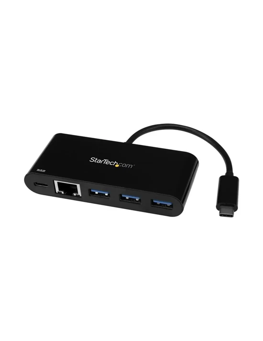 Características del StarTech.com Hub Concentrador USB 3.0 USB-C de 3 Puertos con Ethernet GigabitEl hub USB-C StarTech.com es una solución práctica y compacta para ampliar la conectividad de tu portátil o dispositivo compatible. Diseñado para usuarios que necesitan más puertos USB y conexión de red estable, este concentrador combina alto rendimiento, portabilidad y funcionalidad, siendo ideal para entornos profesionales, teletrabajo o movilidad.Expansión de conectividad USB y red GigabitConvierte un solo puerto USB-C en múltiples opciones de conexión gracias a sus 3 puertos USB 3.0 y su puerto Ethernet Gigabit. Permite conectar periféricos como teclados, ratones o discos externos, mientras disfrutas de una conexión de red rápida y estable, perfecta para entornos donde el WiFi no es suficiente.3 x puertos USB 3.0 Type-A SuperSpeed1 x puerto Ethernet RJ-45 10/100/1000 MbpsCompatible con USB 1.1, 2.0 y 3.0Rendimiento eficiente y tecnologías avanzadasEquipado con chipsets de VIA Labs y Realtek, este hub ofrece un rendimiento fiable con funciones como negociación automática, control de flujo y soporte VLAN. Además, incorpora tecnologías como Energy Efficient Ethernet y UASP para mejorar la eficiencia y velocidad en la transferencia de datos.Soporte para VLAN etiquetada (IEEE 802.1Q)Modo dúplex completo y control de flujoCompatibilidad con UASP para transferencias más rápidasAlimentación por USB-C con entrega de energíaIncluye un puerto USB-C dedicado exclusivamente a la alimentación, lo que permite mantener tu dispositivo cargado mientras utilizas el hub. Esta función resulta clave para portátiles ultrafinos con conectividad limitada.1 x puerto USB-C para alimentaciónEntrada USB-C para conexión al dispositivoAlimentación directa por USBDiseño compacto y alta compatibilidadSu diseño ligero y compacto facilita su transporte, siendo perfecto para llevar en la mochila o maletín. Además, es plug and play y compatible con una amplia gama de sistemas operativos, tanto en entornos Windows, macOS como Linux.Dimensiones: 9.5 x 4.1 x 1.7 cmPeso: 44.9 gCompatible con Windows, macOS y LinuxFiabilidad y funcionamiento en distintos entornosDiseñado para un uso continuo, este hub garantiza un funcionamiento estable en diferentes condiciones ambientales, manteniendo el rendimiento incluso en entornos exigentes.Temperatura de funcionamiento: 0 °C a 45 °CHumedad operativa: 10% - 90% sin condensaciónCumple con normativas FCC y RoHSOtras especificacionesSoporte Jumbo Frames hasta 9000 bytesWake-on-LAN (WOL)MDI/MDI-X automáticoCodificación de prioridad (IEEE 802.1p)Color: Negro