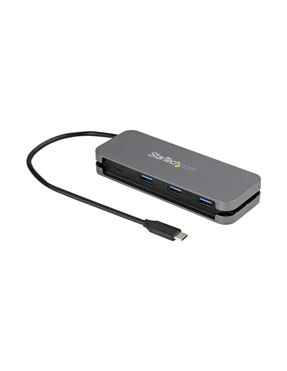 Características del StarTech.com Hub USB-C de 4 Puertos HB30CM3A1CBEl hub USB-C StarTech.com HB30CM3A1CB es una solución práctica y compacta para ampliar la conectividad de tu dispositivo. Diseñado para usuarios que necesitan más puertos USB sin complicaciones, este concentrador convierte un único puerto USB-C en cuatro conexiones adicionales, ideal para portátiles, tablets o equipos compatibles. Su diseño ligero y su amplia compatibilidad lo convierten en un accesorio versátil para el día a día.Expansión eficiente de puertos USBEste hub permite ampliar las capacidades de tu equipo con tres puertos USB-A y un puerto USB-C, todos con tecnología USB 3.2 Gen 1, lo que garantiza una transferencia de datos rápida y estable. Perfecto para conectar periféricos como ratones, teclados, discos duros o memorias USB.3 x USB 3.2 Gen 1 Tipo A1 x USB 3.2 Gen 1 Tipo CVelocidad compatible con USB 3.0 / 3.1 Gen 1 / 3.2 Gen 1Diseño compacto y funcionalGracias a su formato de sobremesa compacto y ligero, este hub es fácil de transportar y utilizar en cualquier entorno. Incluye un cable USB-C integrado de 28 cm que facilita la conexión sin necesidad de accesorios adicionales, además de un sistema de gestión de cableado que ayuda a mantener el espacio ordenado.Dimensiones: 13.5 cm x 5 cm x 2 cmPeso: 74 gColor: gris espacioAmplia compatibilidad multiplataformaEl hub StarTech.com está diseñado para funcionar con una gran variedad de sistemas operativos, lo que lo convierte en una opción flexible tanto para entornos profesionales como personales. No requiere instalación compleja, ofreciendo una experiencia plug & play inmediata.Compatible con Windows, macOS y LinuxSoporte para Android, iPadOS y Chrome OSAlimentación directa por USBConstrucción fiable y estándares universalesFabricado conforme a múltiples estándares USB, este hub garantiza una conectividad estable y segura con una amplia gama de dispositivos. Su diseño robusto está pensado para un uso diario continuado.Cumple con USB 2.0, USB 3.0, USB 3.1 Gen 1 y USB 3.2 Gen 1Diseño duradero para uso frecuenteFuncionamiento sin alimentación externa