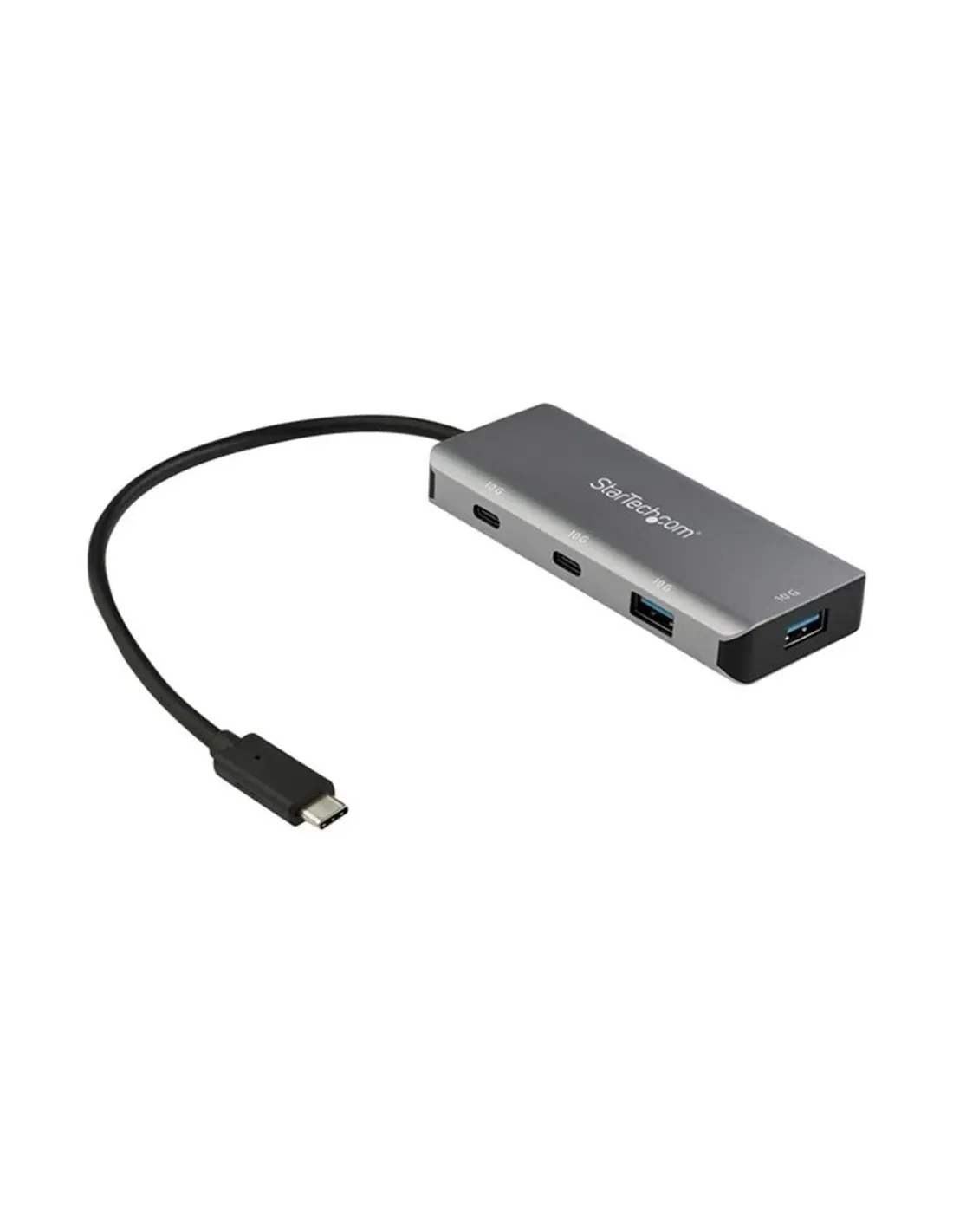 Características del StarTech.com Adaptador Hub USB-C de 4 Puertos (HB31C2A2CB)El **hub USB-C de StarTech.com** modelo **HB31C2A2CB** es una solución compacta y de alto rendimiento para ampliar la conectividad de portátiles, ultrabooks o tablets. Diseñado para usuarios que necesitan una **transferencia de datos rápida y fiable**, este adaptador ofrece **4 puertos USB adicionales** (2 USB-A y 2 USB-C) con velocidades de hasta **10 Gbps**, ideal para conectar periféricos, dispositivos de almacenamiento o cargar dispositivos móviles. Su diseño ligero y el cable integrado de 25 cm lo convierten en una opción perfecta para el uso diario o en movilidad.Conectividad USB 3.2 Gen 2 de alta velocidadEste hub garantiza una transmisión de datos rápida y estable gracias a sus **puertos USB 3.2 Gen 2**, compatibles con versiones anteriores. Ideal para entornos profesionales y domésticos que requieren eficiencia sin comprometer el rendimiento.2 puertos USB-A 3.1 Gen 2 (10 Gbps)2 puertos USB-C 3.1 Gen 2 (10 Gbps)Compatible con USB 3.0, USB 2.0 y USB 1.1Diseño compacto con cable integradoSu formato de sobremesa con carcasa robusta y diseño en colores **negro y gris espacial** lo hace ideal para cualquier espacio de trabajo. El **cable anfitrión USB-C de 25 cm incorporado** evita el desorden de cables adicionales y mejora la portabilidad.Cable USB-C integrado de 25 cmDiseño ligero: solo 190 g de pesoDimensiones: 10,5 x 4,5 x 1,6 cmAmplia compatibilidad multiplataformaCompatible con una gran variedad de sistemas operativos, este hub está preparado para funcionar en entornos Windows, Mac, Linux, Android y Chrome OS sin necesidad de drivers adicionales. Su instalación es totalmente **Plug and Play**.Compatible con Windows 7/8.1/10, Server 2008-2019Compatible con macOS 10.10 a 10.14, Linux Kernel 4.x-5.x, Ubuntu, Android 9.0 y Chrome OSCertificaciones: FCC, RoHS, REACH, UASPFiabilidad y eficiencia técnicaEquipado con **controladores VIA Labs / Realtek (RTS5423 / VL160)**, garantiza una gestión eficiente del flujo de datos. Además, soporta condiciones de uso exigentes, funcionando en temperaturas entre 0 °C y 50 °C.Procesadores de control: VIA Labs / RealtekRango de humedad: 0 - 95% (sin condensación)Temperatura de funcionamiento: 0 °C a 50 °COtras especificacionesPeso con embalaje: 196 gDimensiones embalaje: 20,7 x 14,4 x 3,8 cmDiseñado para: P/N PEXUSB321C