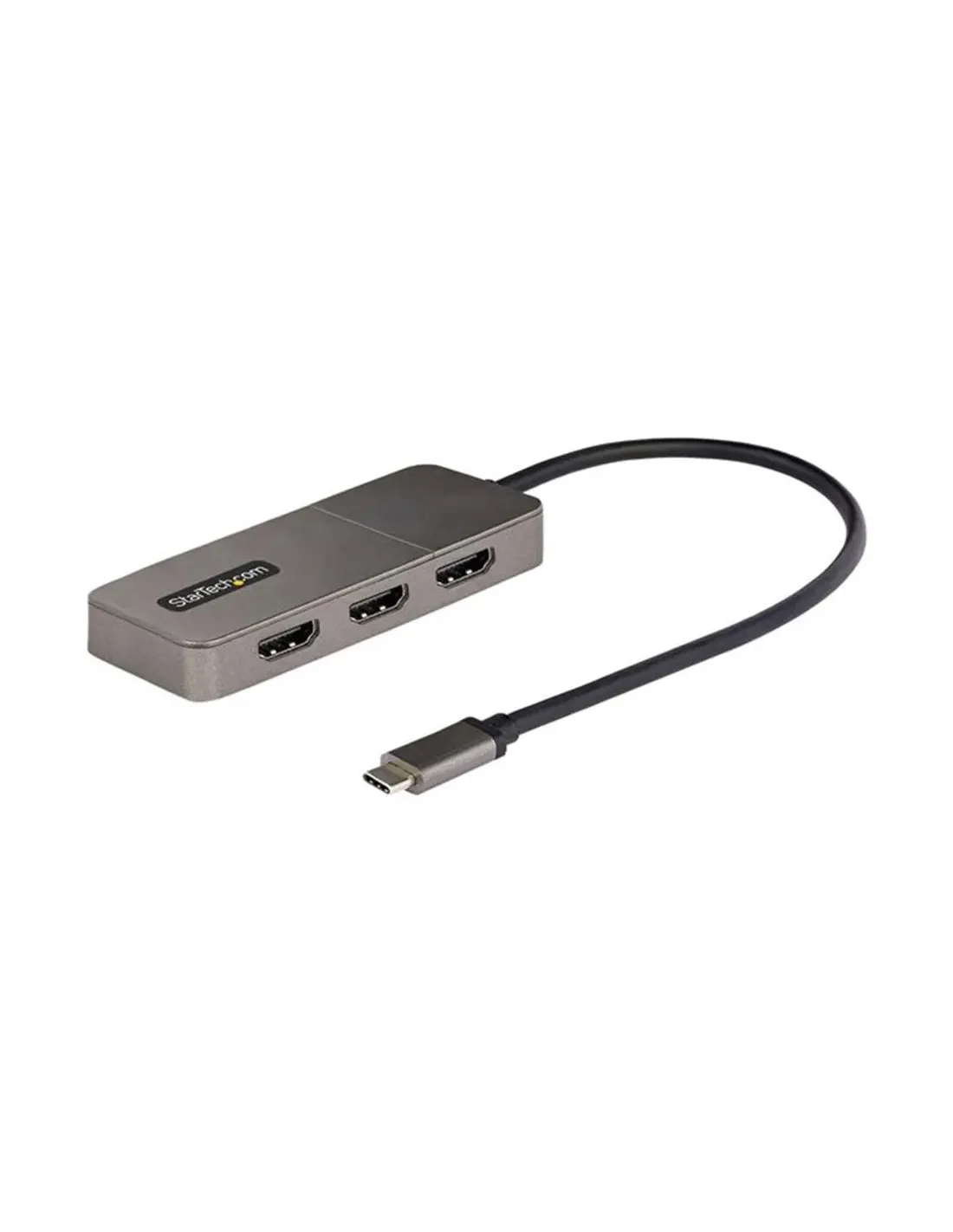 Características de la StarTech.com Hub MST USB-C de 3 Puertos HDMI - 4K 60HzEl hub MST USB-C de StarTech.com es una solución avanzada para usuarios que necesitan ampliar su espacio de trabajo con hasta tres monitores HDMI desde un solo puerto USB-C. Diseñado para entornos profesionales, oficinas o configuraciones multitarea, permite disfrutar de resolución 4K a 60 Hz con compatibilidad HDR, ofreciendo una experiencia visual fluida y de alta calidad.Triple salida de vídeo en 4KGracias a la tecnología MST (Multi-Stream Transport), este hub permite conectar hasta tres pantallas HDMI de forma simultánea. Es ideal para mejorar la productividad en tareas como edición, análisis de datos o trabajo con múltiples aplicaciones abiertas.3 x salidas HDMI independientesResolución máxima de 3840 x 2160 a 60 HzCompatible con configuraciones multimonitorAlta calidad de imagen con HDR y DSCEl soporte para HDR y Display Stream Compression (DSC) garantiza imágenes más nítidas, colores más vivos y mejor rendimiento incluso en resoluciones elevadas. Incorpora chipset Synaptics VMM5310, optimizado para ofrecer estabilidad y calidad de señal.Compatibilidad con HDRSoporte para DisplayPort 1.4 y DSCChipset Synaptics VMM5310Conectividad sencilla y amplia compatibilidadEste hub funciona mediante modo DisplayPort Alternate sobre USB-C, lo que permite una instalación rápida tipo Plug and Play sin necesidad de configuraciones complejas. Es compatible con sistemas Windows 10 y 11.Conexión USB-C con modo DP AltCompatible con Windows 10 / 11Instalación Plug and PlayDiseño compacto y alimentación por USBSu diseño compacto y ligero, junto con la alimentación directa por USB, lo convierten en una opción perfecta para escritorios minimalistas o usuarios en movilidad. Incluye un cable USB-C integrado de 30 cm para mayor comodidad.Dimensiones: 4.3 x 10.5 x 1.4 cmPeso: 72 gCarcasa de plástico en color gris espacioFiabilidad y certificaciones profesionalesEste dispositivo cumple con múltiples estándares del sector, garantizando seguridad, compatibilidad y durabilidad. Además, cuenta con una garantía de 3 años y soporte técnico de por vida por parte del fabricante.Certificaciones: RoHS, WEEE, RCMCompatibilidad con HDCP 2.2Garantía limitada de 3 añosOtras especificacionesTipo de dispositivo: Separador de vídeo/audioTipo: SobremesaSubtipo: HDMICable incluido: USB-C (30 cm)Temperatura de funcionamiento: 0 °C a 40 °CTemperatura de almacenamiento: -40 °C a 70 °CHumedad de funcionamiento: 0 - 85% RH (sin condensación)Dimensiones del embalaje: 14.2 x 17 x 3 cmPeso del embalaje: 124 g