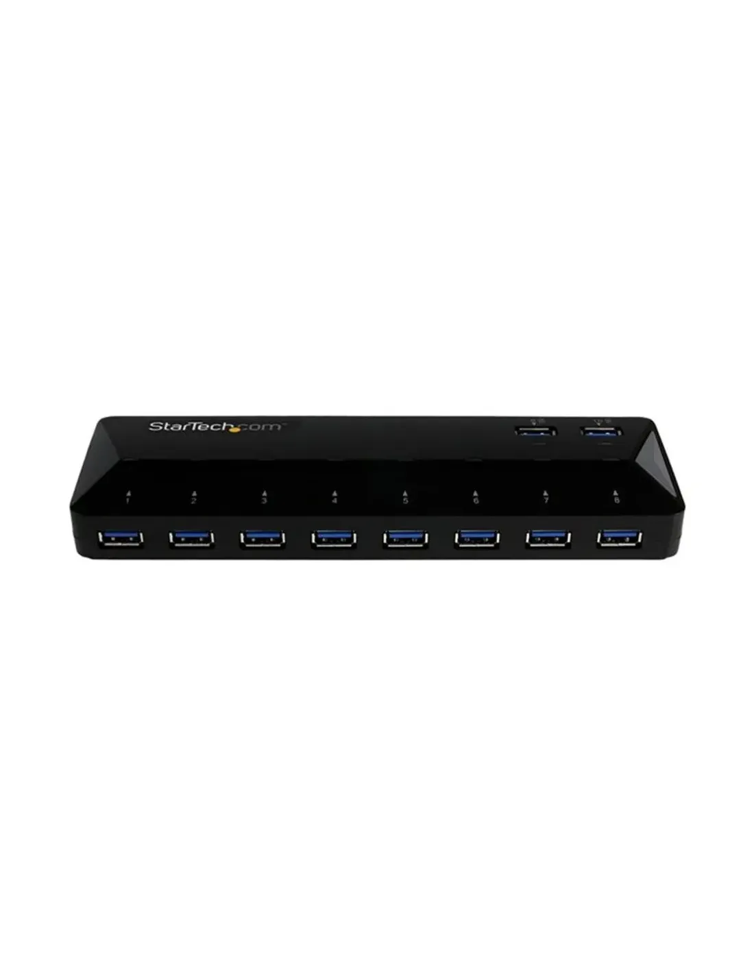 Características del StarTech.com Concentrador USB 3.0 de 10 Puertos con Función de Carga y SincronizaciónEl hub USB 3.0 de 10 puertos StarTech.com es una solución avanzada diseñada para ampliar la conectividad de tu equipo de forma eficiente. Ideal para entornos profesionales, oficinas o usuarios exigentes, este concentrador permite conectar múltiples dispositivos USB simultáneamente y compartir periféricos entre equipos gracias a su función de interruptor integrada. Su diseño compacto y alimentación externa garantizan un rendimiento estable incluso con dispositivos de alto consumo.Amplia conectividad con 10 puertos USB 3.0Este concentrador ofrece 10 puertos USB 3.0 SuperSpeed, permitiendo conectar periféricos como discos duros, teclados, ratones, impresoras o memorias USB con total fluidez. Es compatible con versiones anteriores, lo que asegura una integración sencilla con cualquier dispositivo.10 x puertos USB 3.0 Type ACompatible con USB 1.1, 2.0 y 3.0Chipset VIA VL812 para gestión eficientePuertos de carga dedicados para mayor eficienciaIncluye 2 puertos con capacidad de carga de hasta 1,5 A, ideales para alimentar smartphones, tablets u otros dispositivos sin necesidad de adaptadores adicionales. Esto lo convierte en una opción práctica para mantener todos tus dispositivos listos para usar.2 puertos de carga de 1,5 ASoporte para carga y sincronización simultáneaAlimentación externa para mayor estabilidadFunción de interruptor para compartir periféricosGracias a su función de interruptor de periféricos USB, puedes compartir dispositivos entre distintos equipos sin necesidad de reconectar cables manualmente. Esto es especialmente útil en entornos de trabajo colaborativos o configuraciones con varios ordenadores.Interruptor integrado para compartir dispositivosMayor comodidad y productividadIdeal para oficinas y estaciones de trabajoDiseño compacto y funcionamiento fiableSu formato de sobremesa compacto y ligero facilita su integración en cualquier espacio de trabajo. Además, su fuente de alimentación externa permite un funcionamiento estable incluso con múltiples dispositivos conectados.Dimensiones: 6 x 24 x 2,4 cmPeso: 140 gColor negro discreto y profesionalFiabilidad y compatibilidad garantizadasEl concentrador cumple con múltiples normativas internacionales, garantizando seguridad, eficiencia energética y compatibilidad global. Incluye cable USB SuperSpeed para una instalación rápida y sencilla.Certificaciones: FCC, RoHS, WEEE, RCMIncluye cable USB 3.0Compatible con diferentes regiones: Europa, Reino Unido, Norteamérica y AustraliaOtras especificacionesConsumo eléctrico: 48 WVoltaje: CA 120/230 VTemperatura de funcionamiento: 0 °C a 40 °CTemperatura de almacenamiento: -10 °C a 70 °CIndicadores LED de estado por puertoTipo de dispositivo: Interruptor para compartir periférico USB