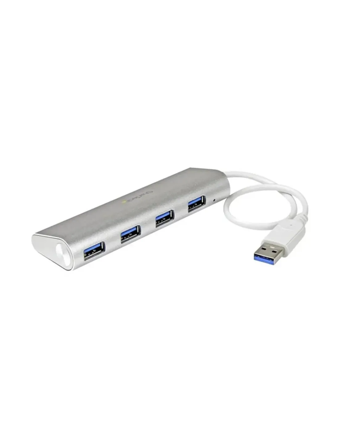 Características del StarTech.com Concentrador Portátil USB 3.0 de 4 PuertosEl hub USB 3.0 StarTech.com de 4 puertos es una solución práctica y eficiente para ampliar la conectividad de tu equipo. Diseñado para usuarios que necesitan más puertos USB sin complicaciones, este concentrador combina rendimiento, portabilidad y diseño elegante en aluminio. Ideal para portátiles, estaciones de trabajo o uso en movilidad.Expansión USB rápida y eficienteConvierte un solo puerto USB en cuatro puertos USB 3.0 SuperSpeed, permitiendo conectar múltiples dispositivos como memorias USB, discos duros externos, teclados o ratones. Ofrece compatibilidad con versiones anteriores, garantizando una integración total con tus dispositivos actuales.4 puertos USB 3.0 Type ACompatible con USB 1.1, 2.0 y 3.0Transferencia de datos de alta velocidadDiseño compacto y portátilSu estructura ligera y compacta, junto con el cable integrado, lo convierte en el accesorio perfecto para llevar contigo a cualquier lugar. El acabado en aluminio en tonos blanco y plata aporta durabilidad y un aspecto moderno que encaja con cualquier entorno de trabajo.Dimensiones: 11.2 x 3.6 x 1.8 cmPeso: 82 gCable USB integrado de 26.8 cmUso sencillo con Plug and PlayGracias a su compatibilidad Plug and Play, no requiere instalación de drivers. Solo tienes que conectarlo y empezar a usarlo de inmediato. Además, cuenta con indicador LED de alimentación para conocer su estado en todo momento.Instalación automática sin softwareIndicador LED de funcionamientoCompatible con múltiples sistemasFiabilidad y cumplimiento de normativasFabricado bajo estrictos estándares de calidad, este hub cumple con certificaciones como FCC, RoHS y WEEE, garantizando un funcionamiento seguro y respetuoso con el medio ambiente.Cumplimiento de normativas internacionalesMateriales duraderos y segurosFuncionamiento estable en diferentes condicionesRendimiento en diferentes entornosPreparado para trabajar en diversas condiciones ambientales, este concentrador ofrece un rendimiento fiable tanto en oficina como en movilidad, adaptándose a diferentes temperaturas y niveles de humedad.Temperatura de funcionamiento: 0 °C a 40 °CHumedad: 10% al 90% sin condensaciónAlmacenamiento: -10 °C a 70 °C