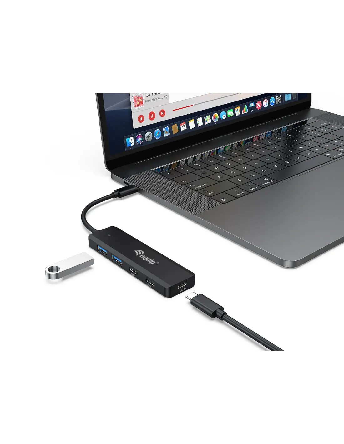 Equip 128964. Interfaz de host: USB 3.2 Gen 1 (3.1 Gen 1) Type-C, Interfaces de concentradores: USB 3.2 Gen 1 (3.1 Gen 1) Type-A, USB 3.2 Gen 1 (3.1 Gen 1) Type-C. Velocidad de transferencia de datos: 5000 Mbit/s, Color del producto: Negro, País de origen: China. Tipo de fuente de alimentación: USB, Voltaje de salida: 5 V, Corriente de salida: 2 A. Ancho: 30 mm, Profundidad: 102 mm, Altura: 12,5 mm. Cantidad por paquete: 1 pieza(s), Ancho del paquete: 23 mm, Profundidad del paquete: 158 mm