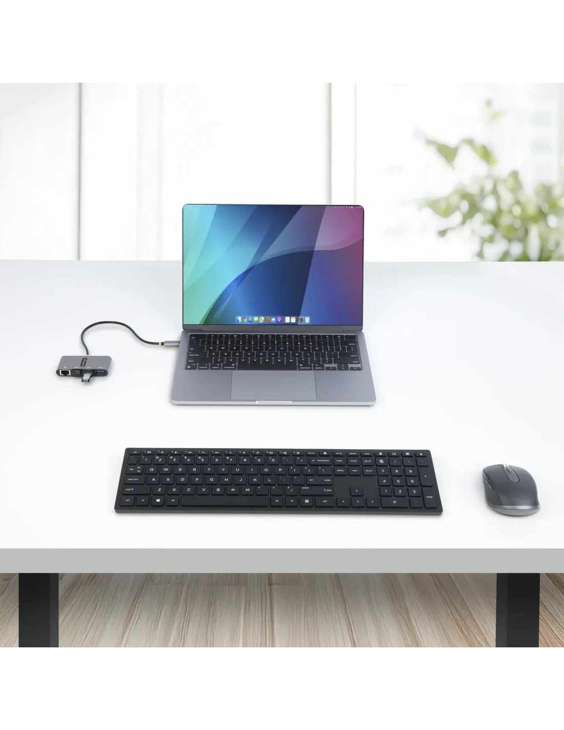 Este dispositivo es compatible con los principales sistemas operativos, incluyendo Windows, macOS, ChromeOS, iPadOS y Android. El Hub se detecta y configura automáticamente al conectarse a un ordenador anfitrión. Esto garantiza la instalación y configuración automática con cualquier ordenador portátil USB-C, incluidos los ordenadores Thunderbolt 3, Thunderbolt 4 y USB4, como Apple MacBook (Intel/M1/M2), Lenovo X1 Carbon y Dell XPS. El cable anfitrión USB-C incorporado de 30cm garantiza una configuración sencilla y reduce la tensión del conector en dispositivos 2 en 1 como Surface Pro 7, iPad Pro, HP Elite X2 y portátiles sobre soportes elevados.