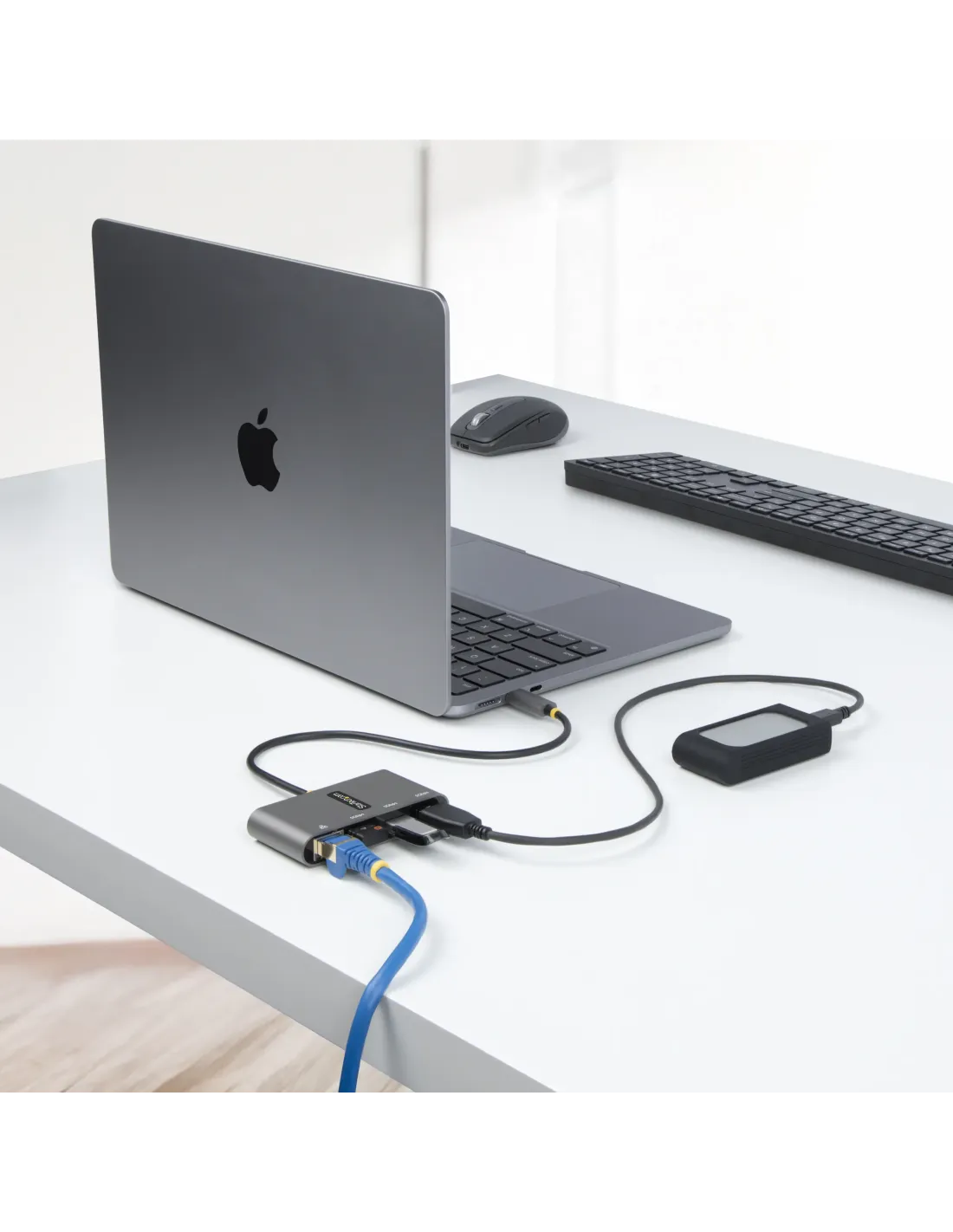 StarTech.com Hub Adaptador USB-C con Ethernet de 3 Puertos USB-A - Red Ethernet Gigabit RJ45 - USB 3.0 5Gbps - Alimentado por