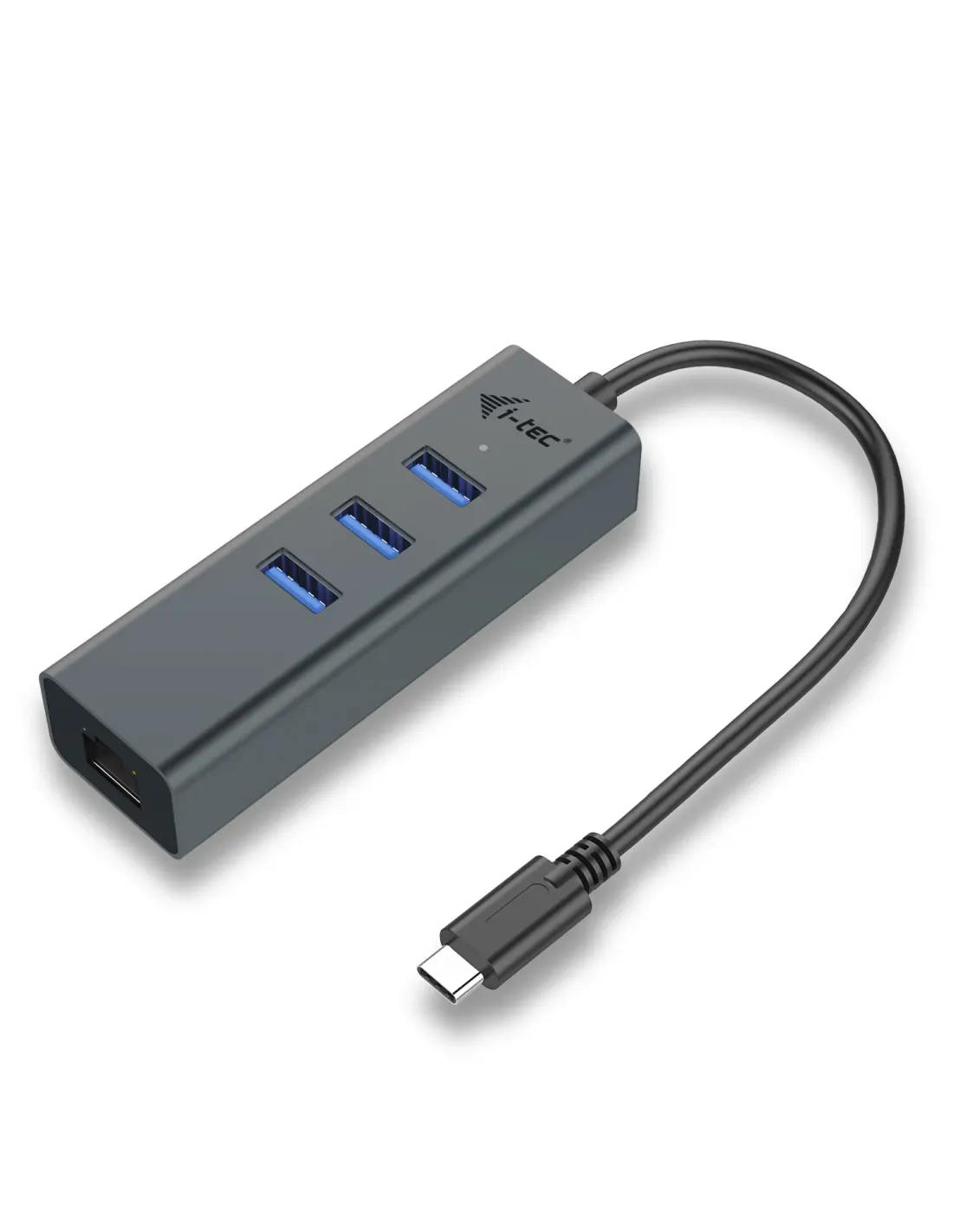 i-tec Metal USB-C HUB 3 Port + Gigabit Ethernet Adapter, Gris, LAN, Realtek 0411, Realtek 8153, 96 mm, 30 mm, 21 mm