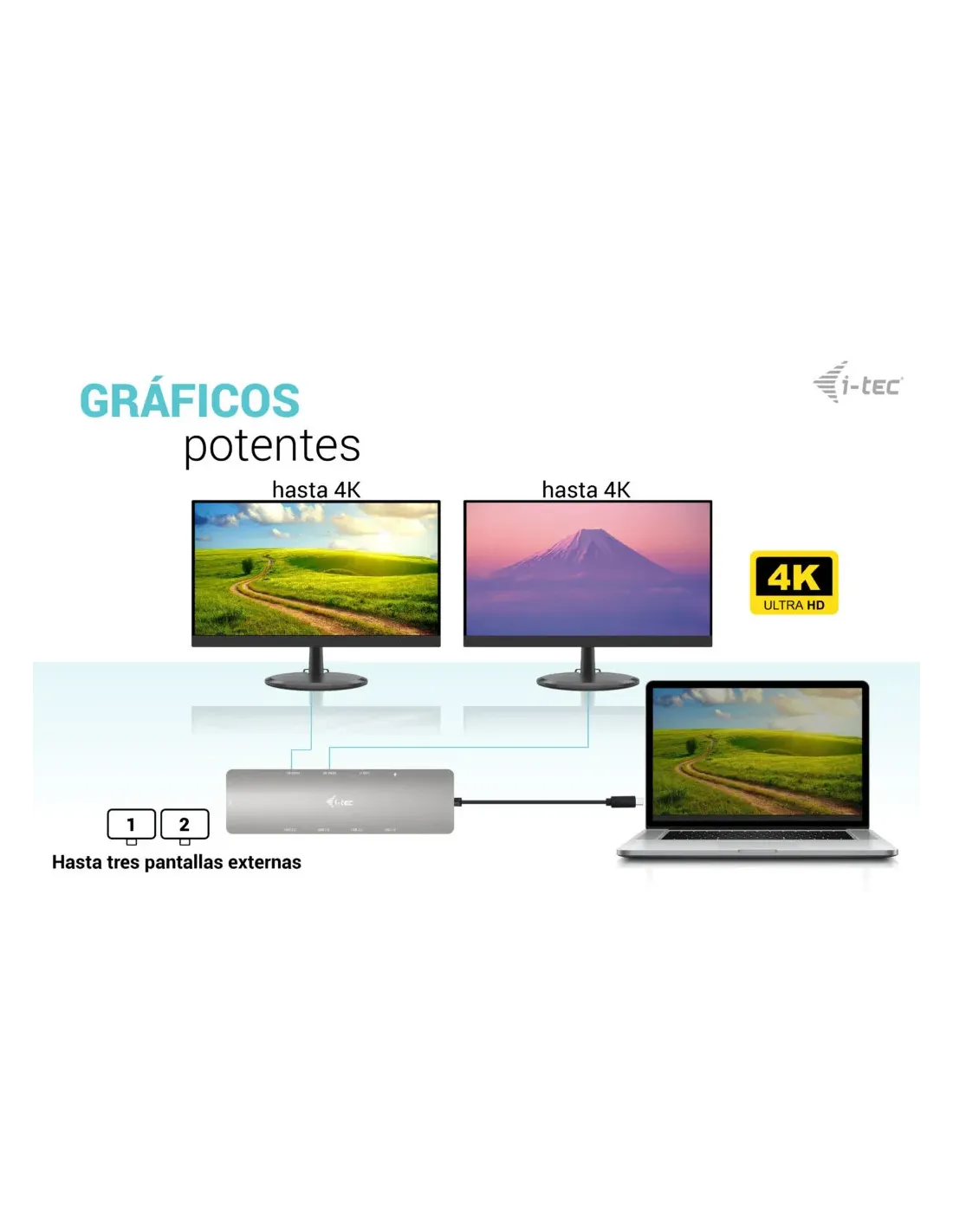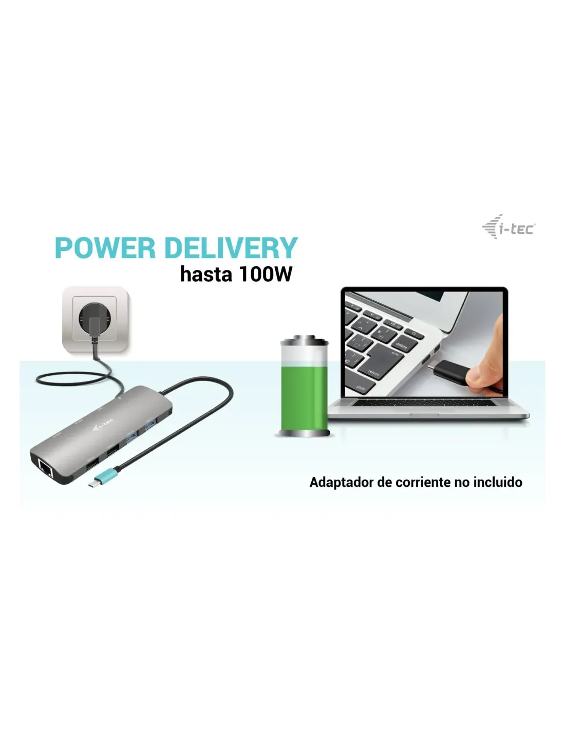 i-tec USB-C Metal Nano 2x Display Docking Station + Power Delivery 100 W, Alámbrico, USB 3.2 Gen 1 (3.1 Gen 1) Type-C, 100 W, 10,100,1000 Mbit/s, Plata, 5 Gbit/s