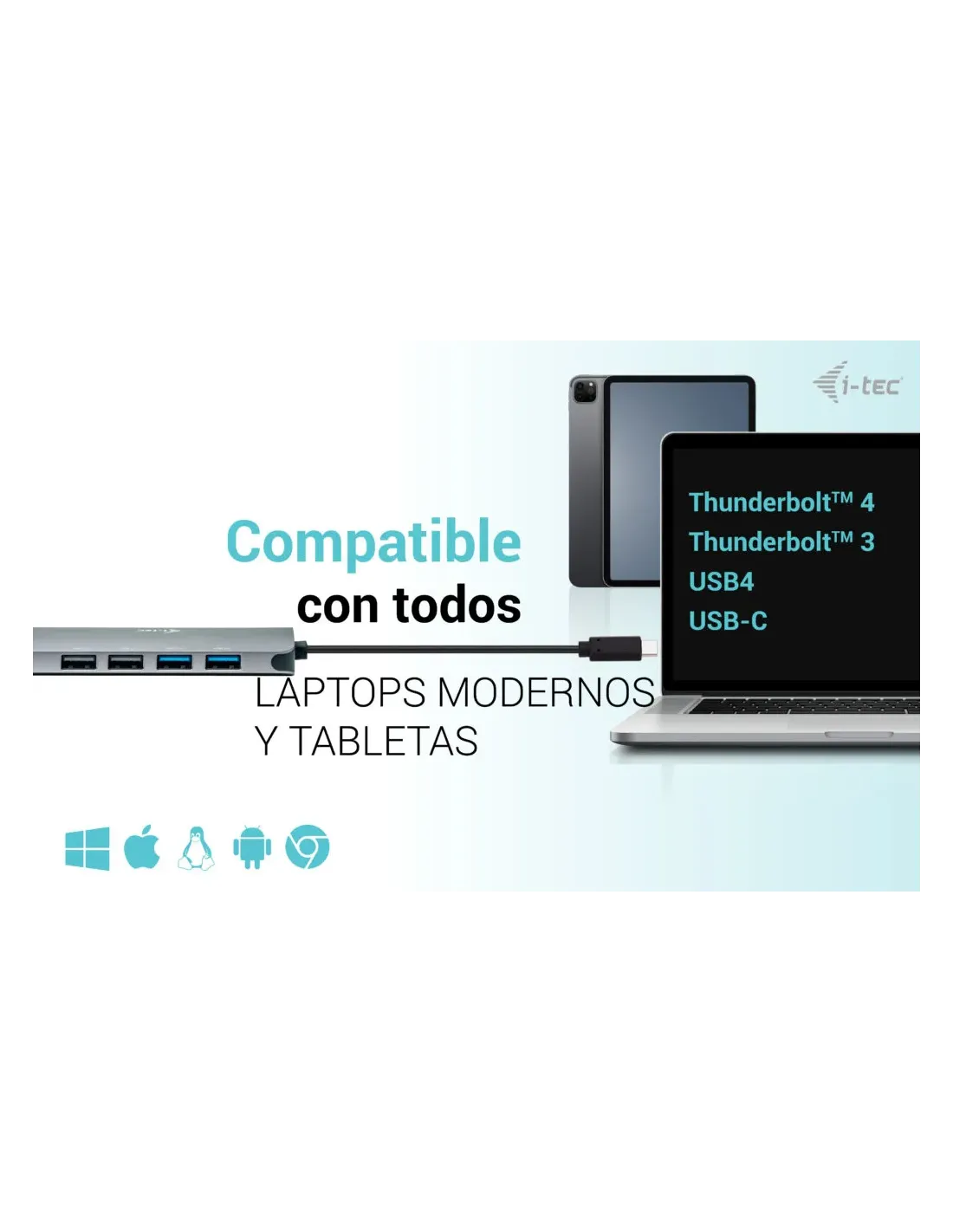 La estación de acoplamiento también es totalmente compatible con tabletas y portátiles que dispongan de un puerto Thunderbolt 3/4.