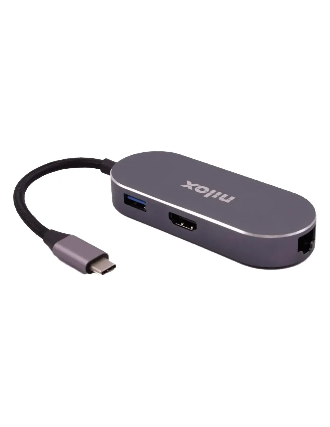 Nilox Mini Docking Station Type-C, USB Tipo C, HDMI, RJ-45, USB Tipo C, • 1 puerto HDMI (4K, 30 Hz) • 3 puertos USB 3.0 • 1 puerto RJ45 (Gigabit LAN Ethernet) •...