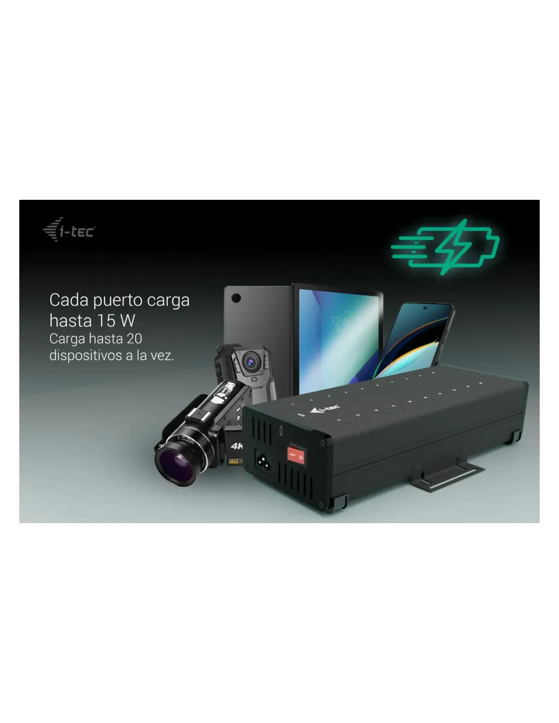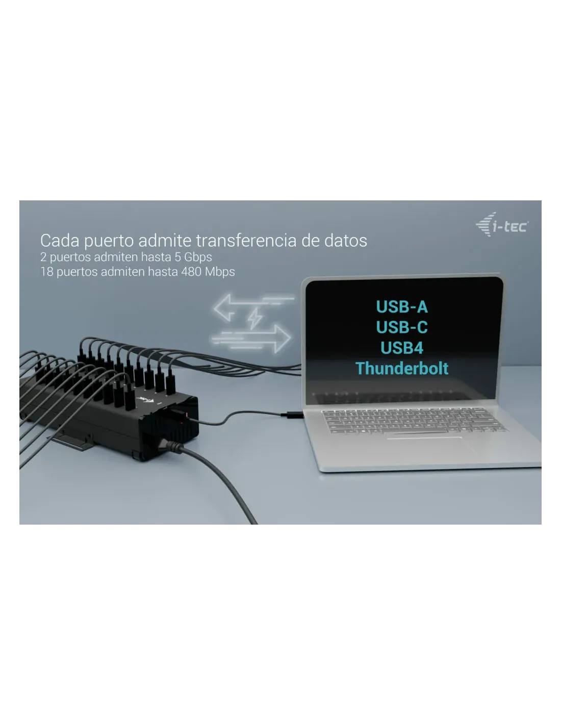 i-tec USB-C/USB-A Metal Charging + data HUB, 15W per port, 20x USB-C, Interior, Corriente alterna, 12 V, Negro