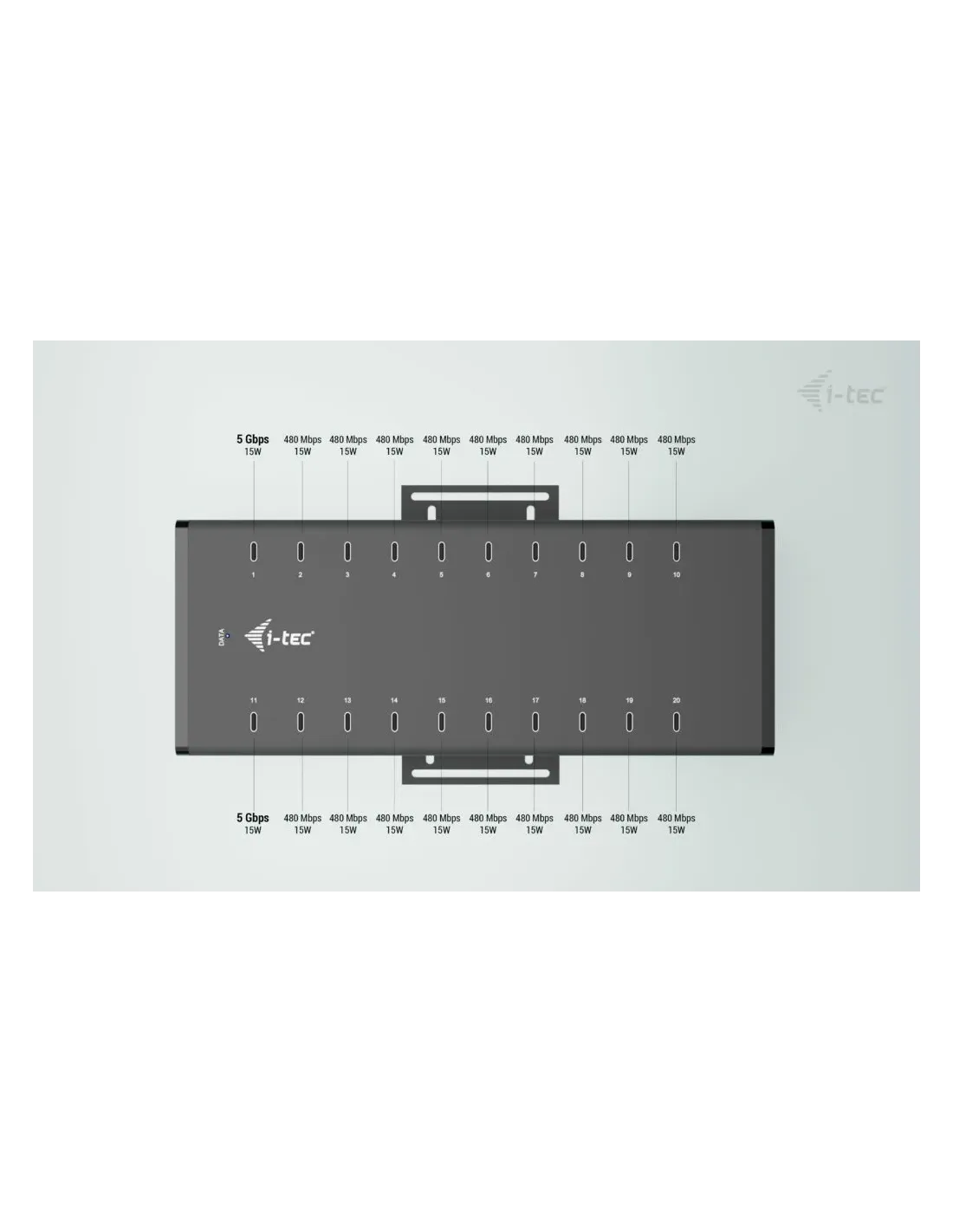 i-tec USB-C/USB-A Metal Charging + data HUB, 15W per port, 20x USB-C. Tipo de cargador: Interior, Alimentación: Corriente alterna, Compatibilidad del cargador: Universal. Voltaje de entrada: 100-240 V, Voltaje de salida máximo: 12 V. Número de puertos USB Tipo C: 20, Carga rápida, Funciones de protección de poder: Sobreintensidad, Sobrevoltaje, Cortocircuito. Color del producto: Negro