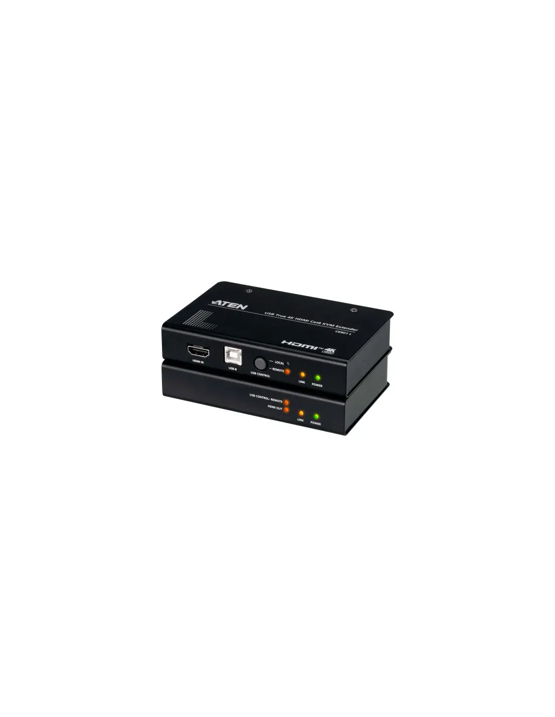 Los modelos CE801L y CE801R son extensores KVM USB HDMI Cat 6 diseñados para salvar la distancia entre consolas locales y remotas con operaciones KVM fluidas y eficientes. Con el ordenador fuente conectado al CE801L, puede beneficiarse de un control KVM con respuesta instantánea en la consola remota CE801R, que ofrece vídeo True 4K sin concesiones, audio digital nítido, datos periféricos USB de alta velocidad y control serie ininterrumpido a distancias de hasta 70 metros, todo ello a través de una única conexión Cat 6. Cuando se trata de una extensión KVM simplificada y un acceso remoto ergonómico con hardware ubicado de forma segura lejos del espacio de trabajo, el CE801 habla por sí mismo.Extensión KVM True 4K de hasta 70 mEl CE801 amplía el control KVM hasta 70 metros a través de una conexión Cat 6, transmitiendo impresionantes vídeos True 4K con HDR, junto con datos USB, audio digital y control serie entre consolas locales y remotas.Extensión KVM FHD de largo alcance hasta 100 mCon el modo Long-Reach, el CE801 permite una extensión KVM de hasta 100 metros a través de una conexión Cat 6, lo que proporciona una nitidez de vídeo de 1080p con facilidad.Acceso a doble consola con control KVM privilegiadoAl pulsar el botón del CE801L, la consola local obtiene prioridad de acceso KVM al PC fuente en cualquier momento (modo local). Al pulsar el botón de nuevo, se libera esta prioridad (modo automático), lo que permite el acceso KVM desde la consola local o remota, cualquiera que obtenga el control primero.Vídeo óptimo con conmutación EDIDPara garantizar una calidad de salida óptima tanto en la consola local como en la consola remota, los interruptores EDID del CE801L se pueden ajustar para configurar el EDID para ambas salidas HDMI.Comunicación de puerto serie RS-232 para control ampliadoEl CE801R está equipado con un puerto serie para la conexión a un dispositivo serie, como una pantalla táctil o un escáner de códigos de barras, que puede comunicarse de forma remota mediante comandos RS-232 desde un terminal serie (o PC) conectado al CE801L, lo que facilita la interacción en tiempo real entre los dispositivos y la transmisión de datos entre las consolas locales y remotas.Instalación segura para un suministro eléctrico fiableEl adaptador de corriente está fijado con un tornillo de bloqueo en la toma de CC, lo que garantiza un suministro de energía estable y evita desconexiones accidentales.Diseño apto para montaje en rackLos extensores KVM son compactos y se pueden montar en rack, lo que los hace flexibles para una instalación que ahorra espacio.