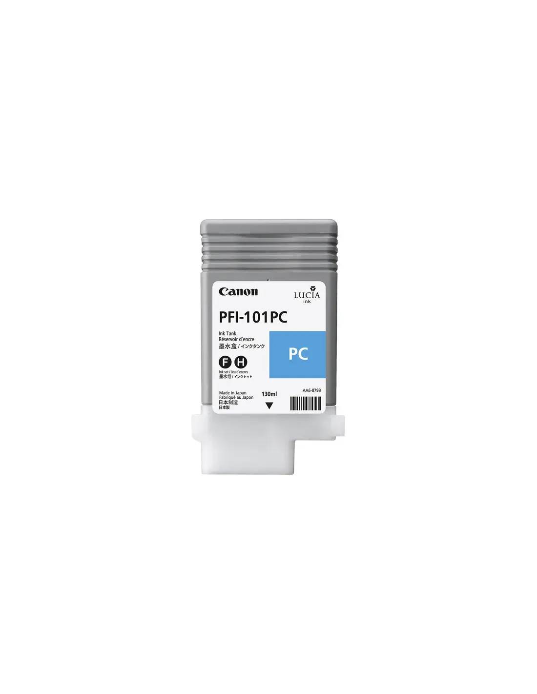 CARTUCHO DE TINTA CANON PFI-101PC CIAN FOTO ORIGINAL CON REF. 0887B001. ESTECONSUMIBLE TIENE UNA CAPACIDAD DE 130MLESTE CONSUMIBLE ES VÁLIDO PARA LAS SIGUIENTES IMPRESORAS:IPF5000 / PF6000 / IPF5100 / IPF6100 / IPF6200RECUERDA, EL USO DE CONSUMIBLES ORIGINALES GARANTIZA LA MEJOR CALIDAD DEIMPRESIÓN Y PROLONGA LA VIDA ÚTIL DE TU IMPRESORA.