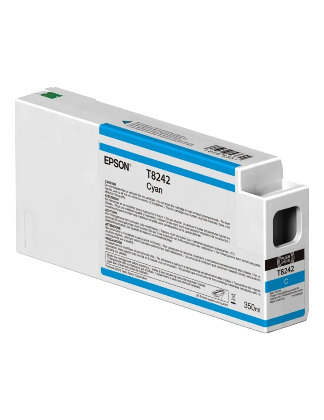 CaracterísticasTipo OriginalVolumen de tinta de color 350 mlCantidad de cartuchos de tinta de color 1Tipo de suministro Single packDesempeñoColores de impresión CyanMarca compatible EpsonEmpaquetadoCantidad por paquete 1 pieza(s)