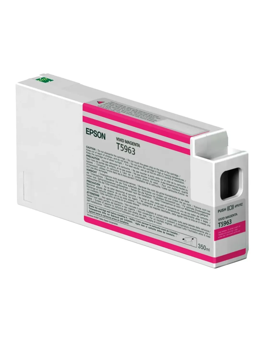 CaracterísticasTipo OriginalCódigo OEM C13T596300Tipo de tinta Pigment-based inkVolumen de tinta de color 350 mlCantidad de cartuchos de tinta de color 1Tipo de tinta de color Pigment-based inkDatos logísticosCantidad por palé 448 pieza(s)Anchura del palé 800 mmLongitud del palé 1200 mmAltura del palé 300 mmCantidad por capa de palet 64 pieza(s)Cantidad por palé (Reino Unido) 672 pieza(s)DesempeñoColor YTecnología de impresión Inkjet printingCompatibilidad Stylus Pro 7700/7900/9700/9900/WT790Colores de impresión Vivid magentaPaís de origen ChinaMarca compatible EpsonDetalles técnicosCódigo de Sistema de Armomización (SA) 84439990EmpaquetadoPeso del paquete 0.762 gProfundidad del paquete 318 mmAltura del paquete 145 mmAncho del paquete 57 mmCantidad por paquete 1 pieza(s)