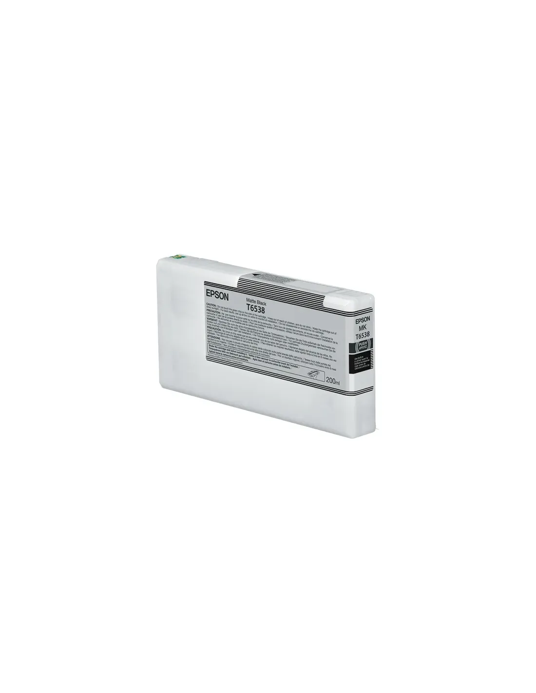CaracterísticasTipo OriginalCódigo OEM C13T653800Tipo de tinta Pigment-based inkVolumen de tinta negra 200 mlCantidad de cartuchos de tinta negra 1Tipo de tinta de color Pigment-based inkDatos logísticosCantidad por palé 864 pieza(s)Anchura del palé 800 mmLongitud del palé 1200 mmAltura del palé 510 mmCantidad por capa de palet 72 pieza(s)Cantidad por palé (Reino Unido) 1296 pieza(s)DesempeñoTecnología de impresión Inkjet printingCompatibilidad Stylus Pro 4900 SpectroProofer UVColores de impresión Matte blackPaís de origen ChinaMarca compatible EpsonDetalles técnicosCódigo de Sistema de Armomización (SA) 84439990EmpaquetadoPeso del paquete 0.97 gProfundidad del paquete 215 mmAltura del paquete 115 mmAncho del paquete 40 mmCantidad por paquete 1 pieza(s)