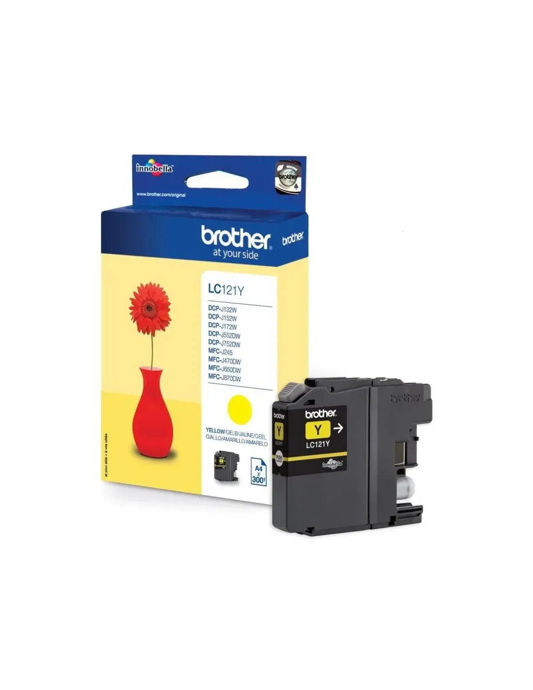 Marca: Brother Modelo: LC121YBP Tipo: Cartucho de tinta Innobella™ Amarillo Para: - DCP-J152W - DCP-J552DW - DCP-J752DW - MFC-J650DW - MFC-J470DW - MFC-J870DW Duración: 300 páginas A4 Fecha de revisión: 09-09-2013 por DAV