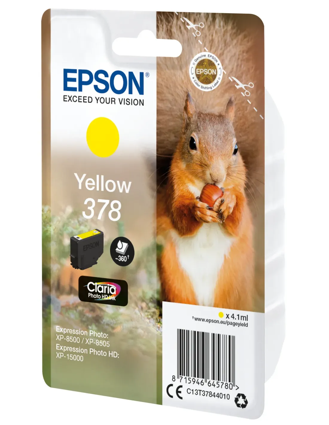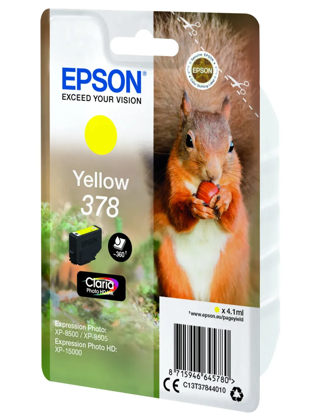 Epson Squirrel Singlepack Yellow 378 Claria Photo HD Ink, Rendimiento estándar, Amarillo, Tinta a base de pigmentos, 4,1 ml, 1 pieza(s), 360 páginas