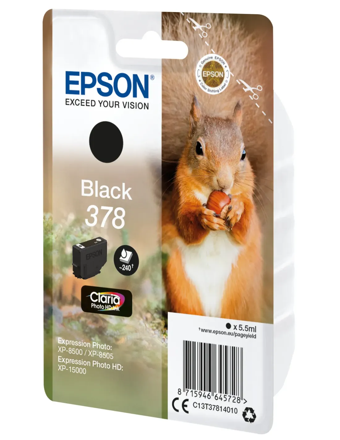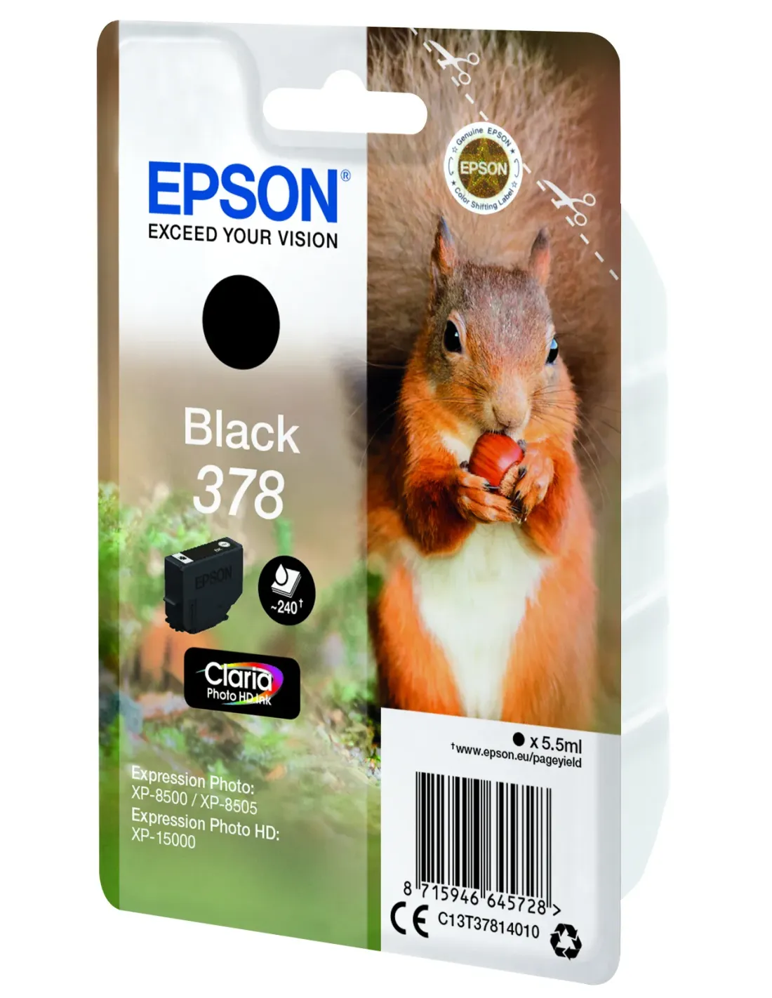 Epson Squirrel Singlepack Black 378 Claria Photo HD Ink, Rendimiento estándar, Negro, Tinta a base de pigmentos, 5,5 ml, 1 pieza(s), 240 páginas