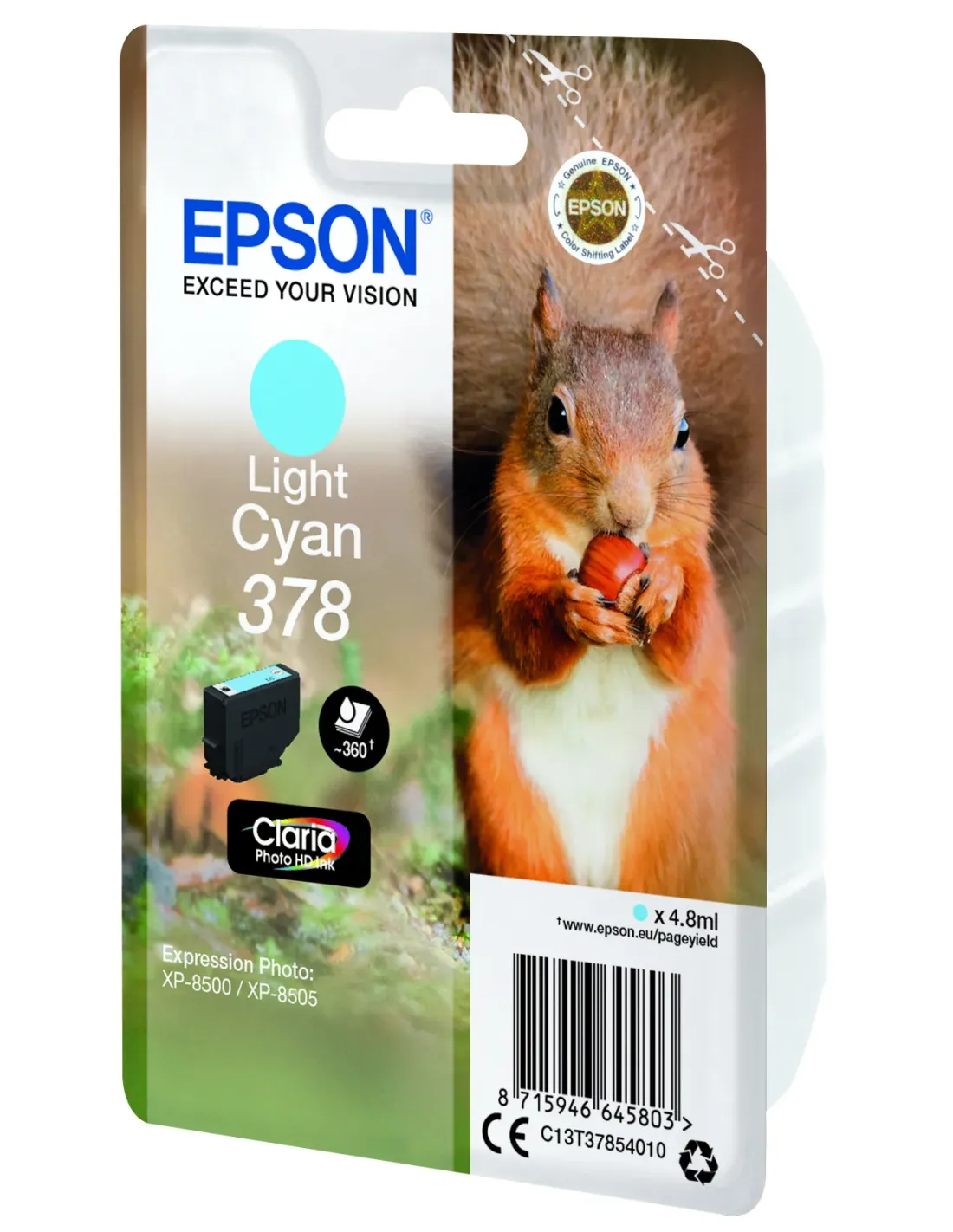Epson Squirrel Singlepack Light Cyan 378 Claria Photo HD Ink, Rendimiento estándar, Cian claro, Tinta a base de pigmentos, 4,8 ml, 1 pieza(s), 360 páginas