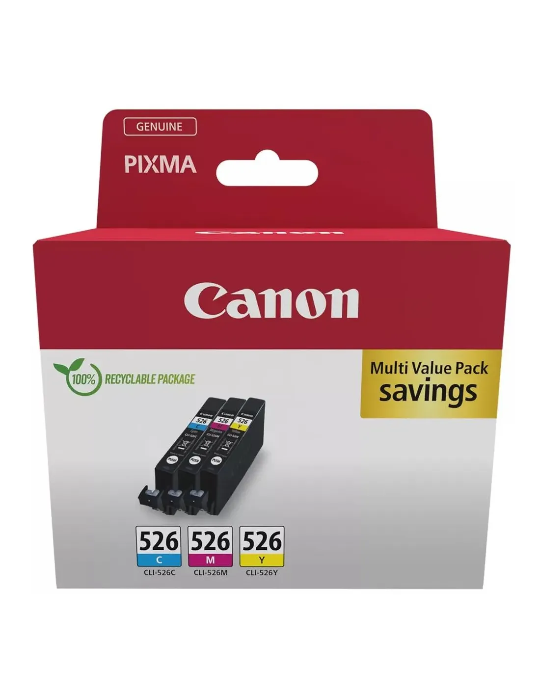 Este multipack contiene un cartucho de tinta de cada color: cian, magenta y amarillo. El conjunto de tres cartuchos de tinta de 9 ml ofrece comodidad y ahorro El sistema ChromaLife100+, en combinación conlos papeles fotográficos Canon, ofrece unos impresionantes resultados y durabilidad.VentajasLa tinta Canon original permite imprimir, de media, hasta un 35 % más de impresiones de calidad que los cartuchos de imitación***La tinta Canon original ofrece impresiones con una calidad constante el 100 % de su vida útil***La tinta Canon original es 100 % fiable para que imprimas sin preocupaciones***Devuelve cada cartucho de tinta y tóner para que se recicle o reutilice. Es gratis, fácil y respetuoso con el medio ambiente.CompatibilidadPIXMA MX885PIXMA MX715PIXMA MG8250PIXMA MG8150PIXMA MG6250PIXMA MG6150PIXMA MX895PIXMA MG5250PIXMA MG5150PIXMA iX6550PIXMA iP4950PIXMA iP4850PIXMA MG5350PIXMA iX6550