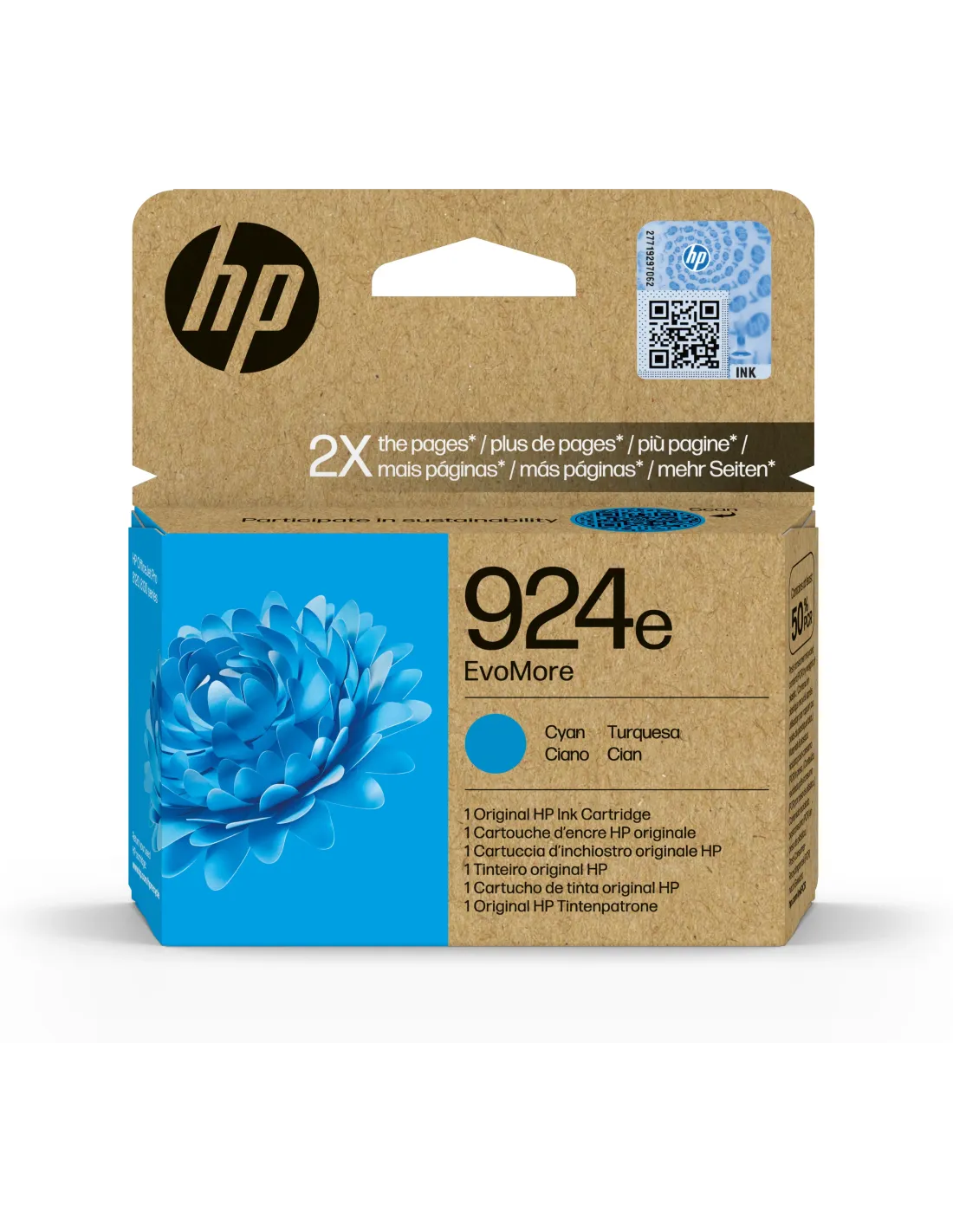 HP Cartucho de Tinta Original EvoMore 924e cian, Alto rendimiento (XL), Cian, 1 pieza(s), 800 páginas, Pack individual