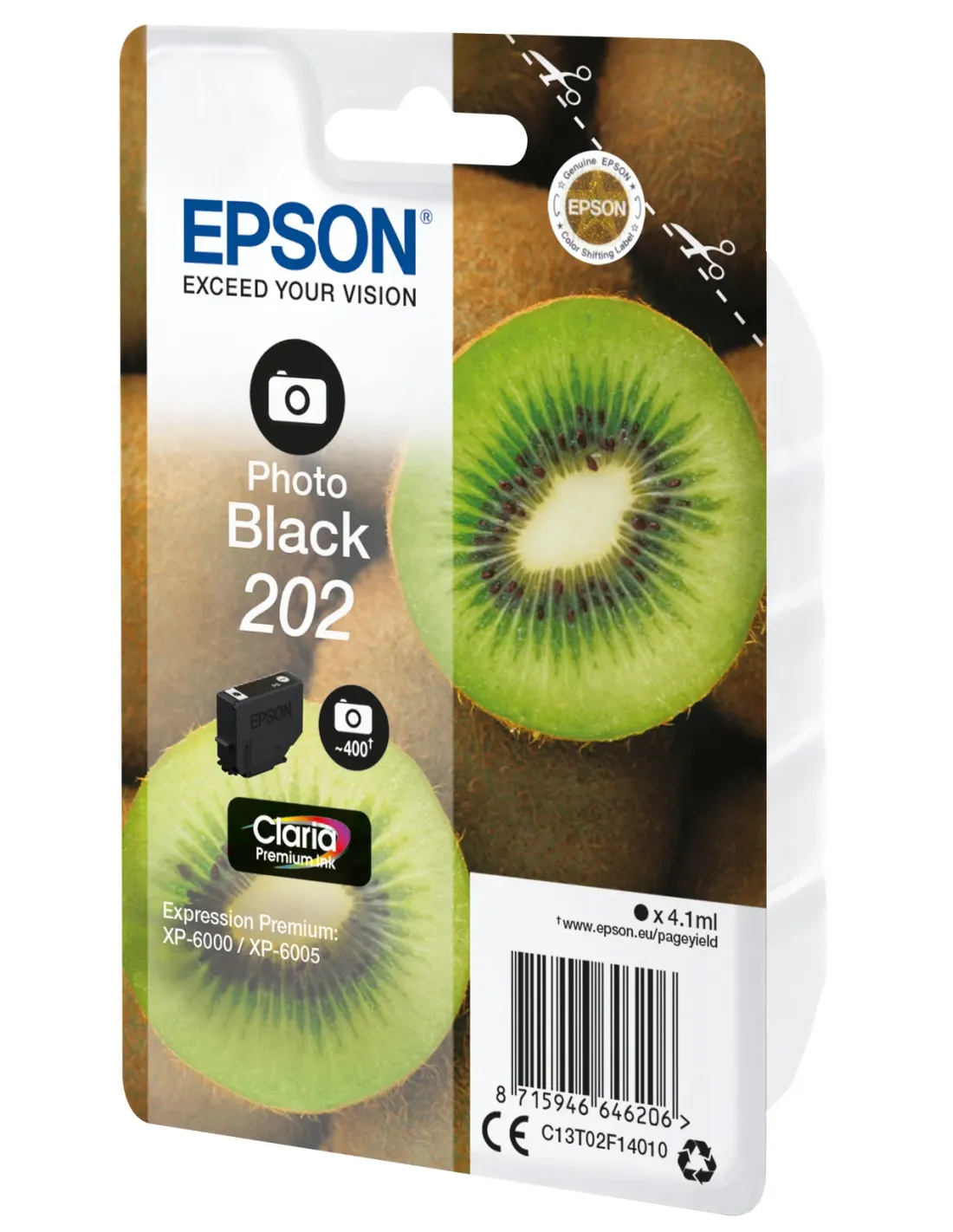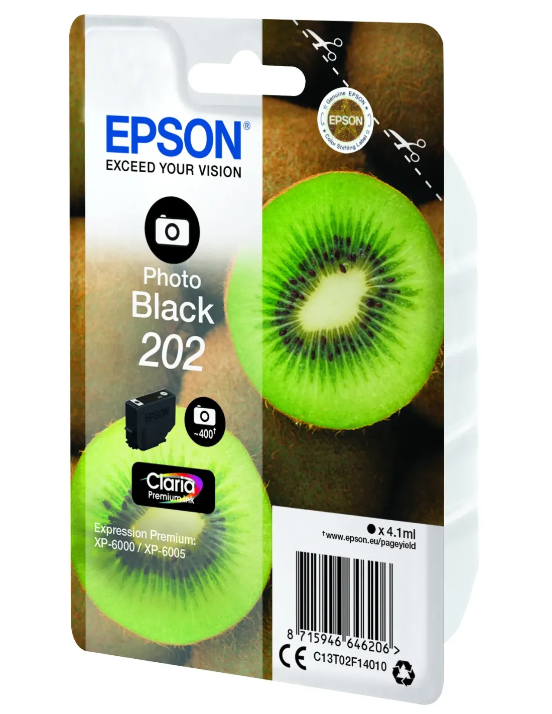 Epson Kiwi Singlepack Photo Black 202 Claria Premium Ink, Rendimiento estándar, Foto negro, Tinta a base de colorante, 4,1 ml, 1 pieza(s), 400 páginas