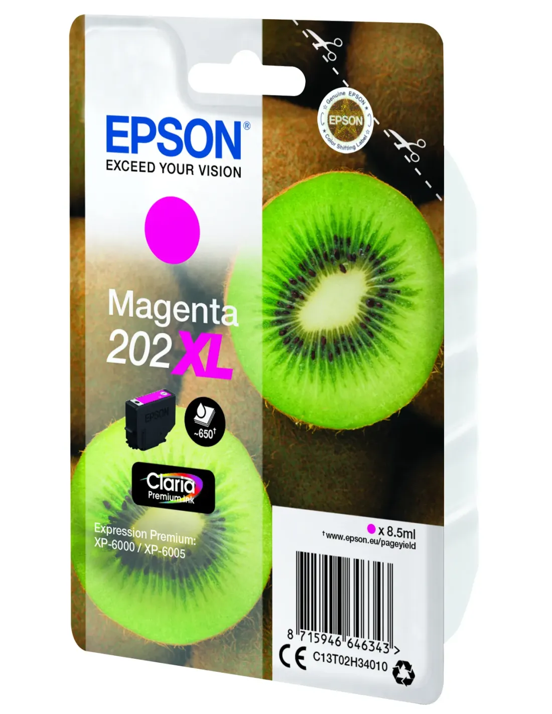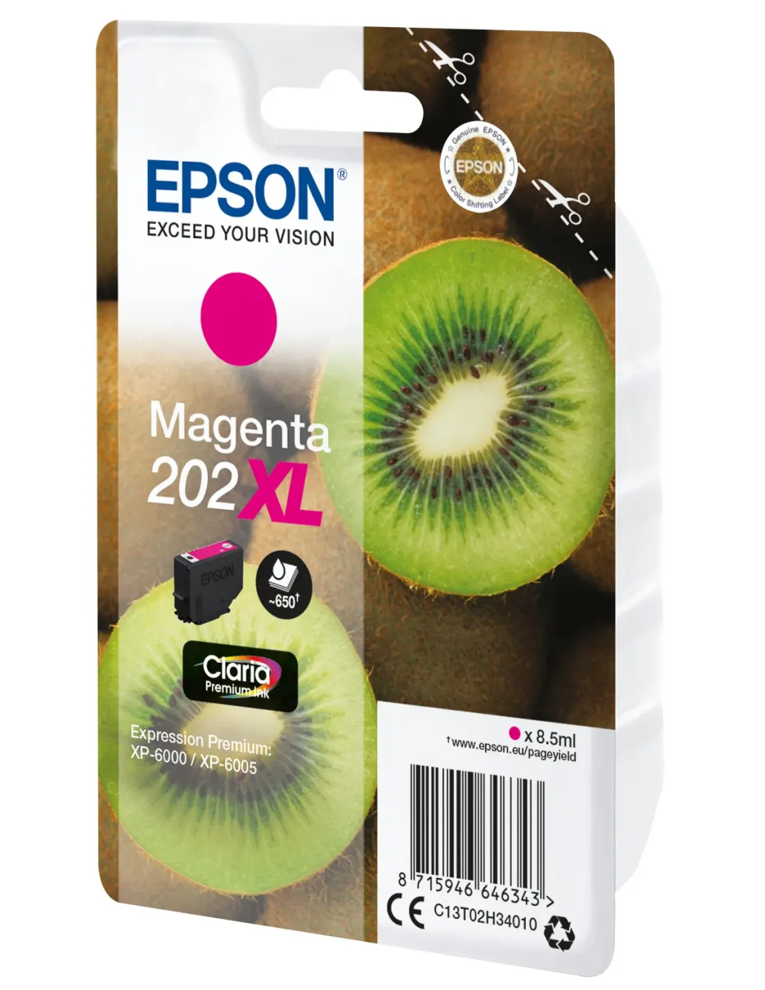 Epson Kiwi Singlepack Magenta 202XL Claria Premium Ink, Alto rendimiento (XL), Magenta, Tinta a base de pigmentos, 8,5 ml, 1 pieza(s), 650 páginas