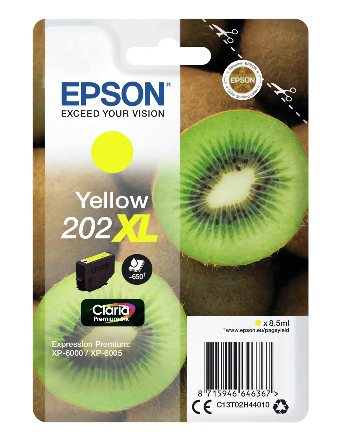 Epson Kiwi Singlepack Yellow 202XL Claria Premium Ink, Alto rendimiento (XL), Amarillo, Tinta a base de pigmentos, 8,5 ml, 1 pieza(s), 650 páginas