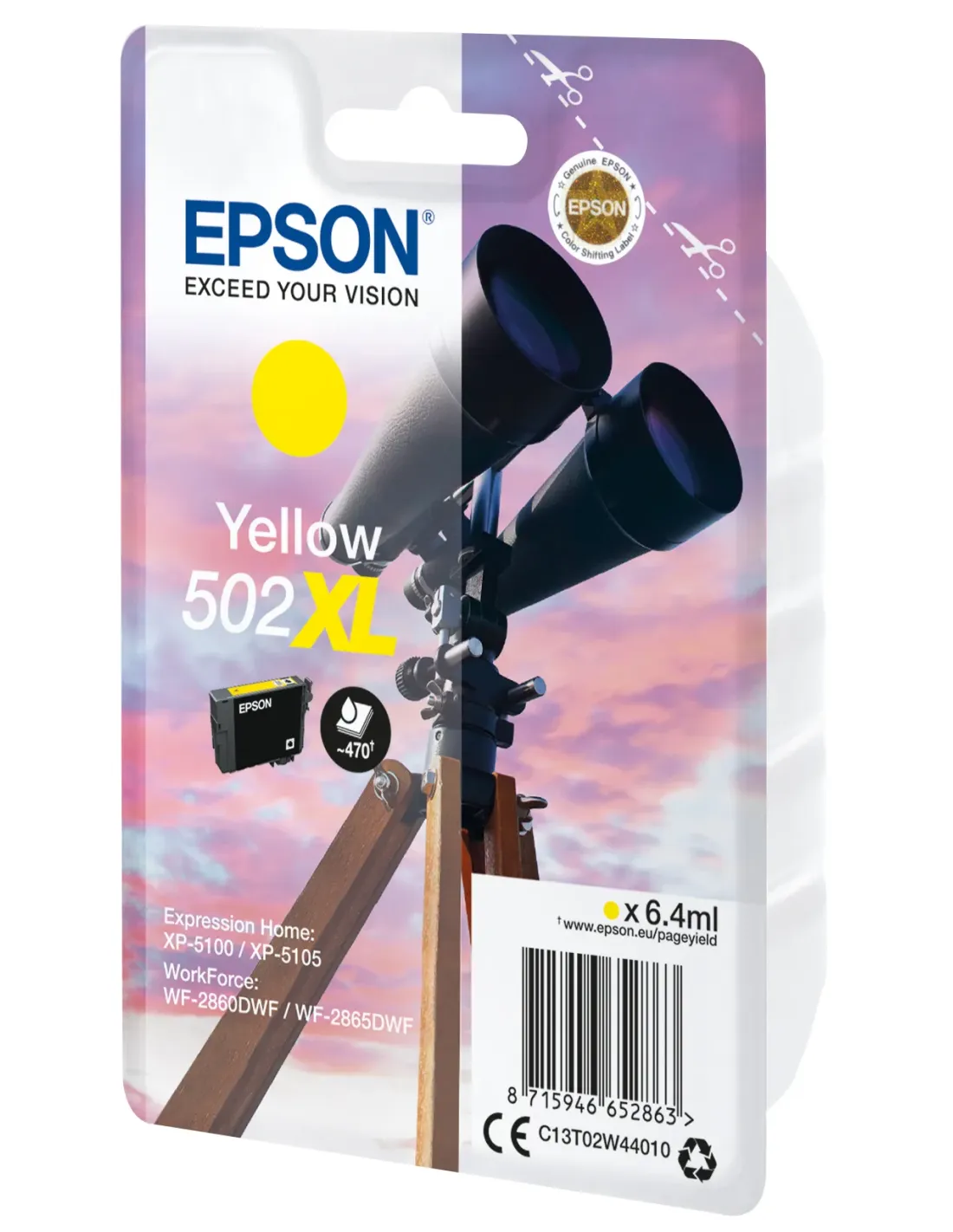 Epson Singlepack Yellow 502XL Ink, Alto rendimiento (XL), Amarillo, Tinta a base de pigmentos, 6,4 ml, 1 pieza(s), 470 páginas
