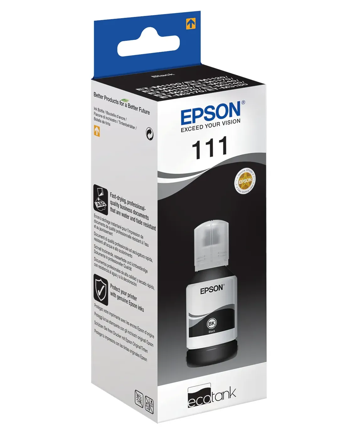 Epson 111 EcoTank Pigment black ink bottle, Original, Negro, Epson, EcoTank ET-M3180, ET-M3170, ET-M3140, ET-M2140, ET-M1180, ET-M1140, ET-M1120, ET-M1100, Filipinas, 1 pieza(s)