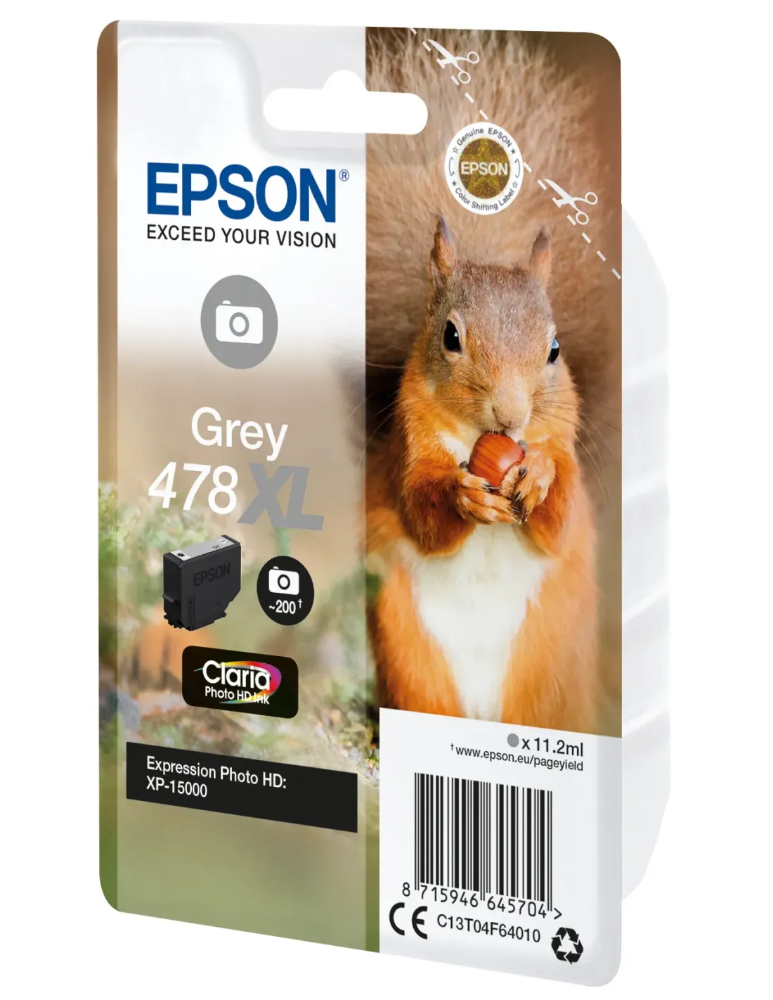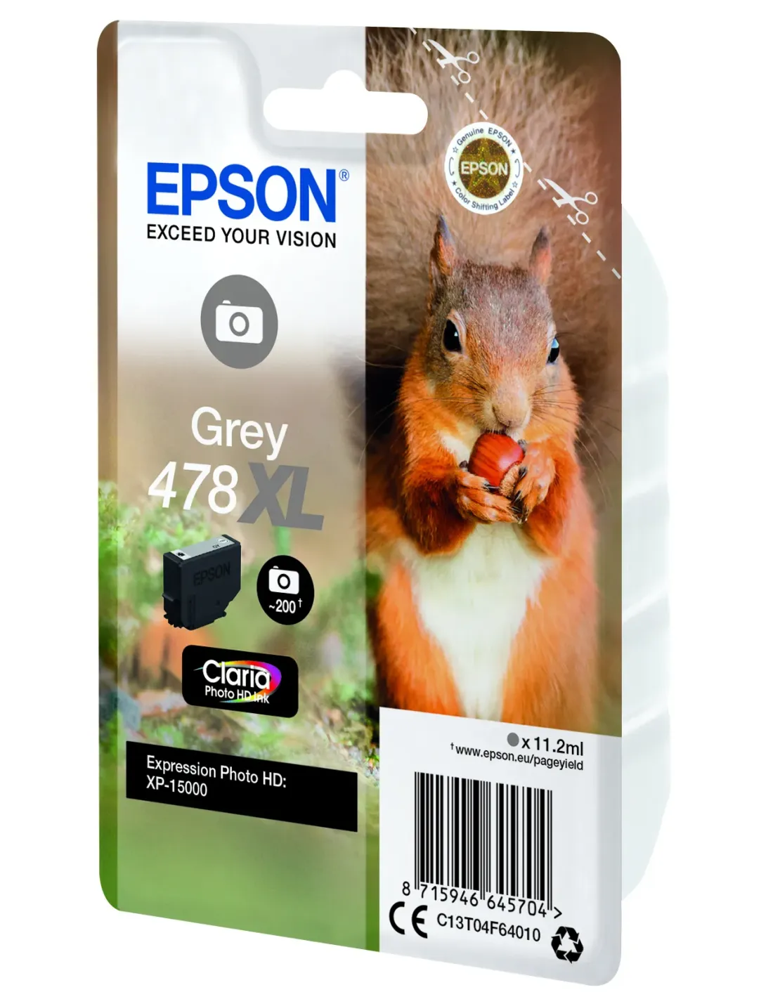 Epson Squirrel Singlepack Grey 478XL Claria Photo HD Ink, Alto rendimiento (XL), Gris, Tinta a base de colorante, 11,2 ml, 1 pieza(s), 200 páginas