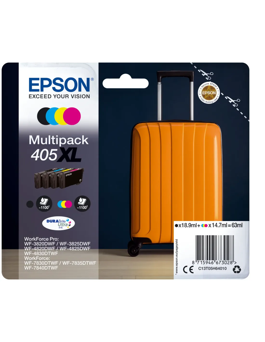 Epson Multipack 4-colours 405XL DURABrite Ultra Ink, Alto rendimiento (XL), Negro, Cian, Magenta, Amarillo, Tinta a base de pigmentos, Tinta a base de pigmentos, 18,9 ml, 14,7 ml