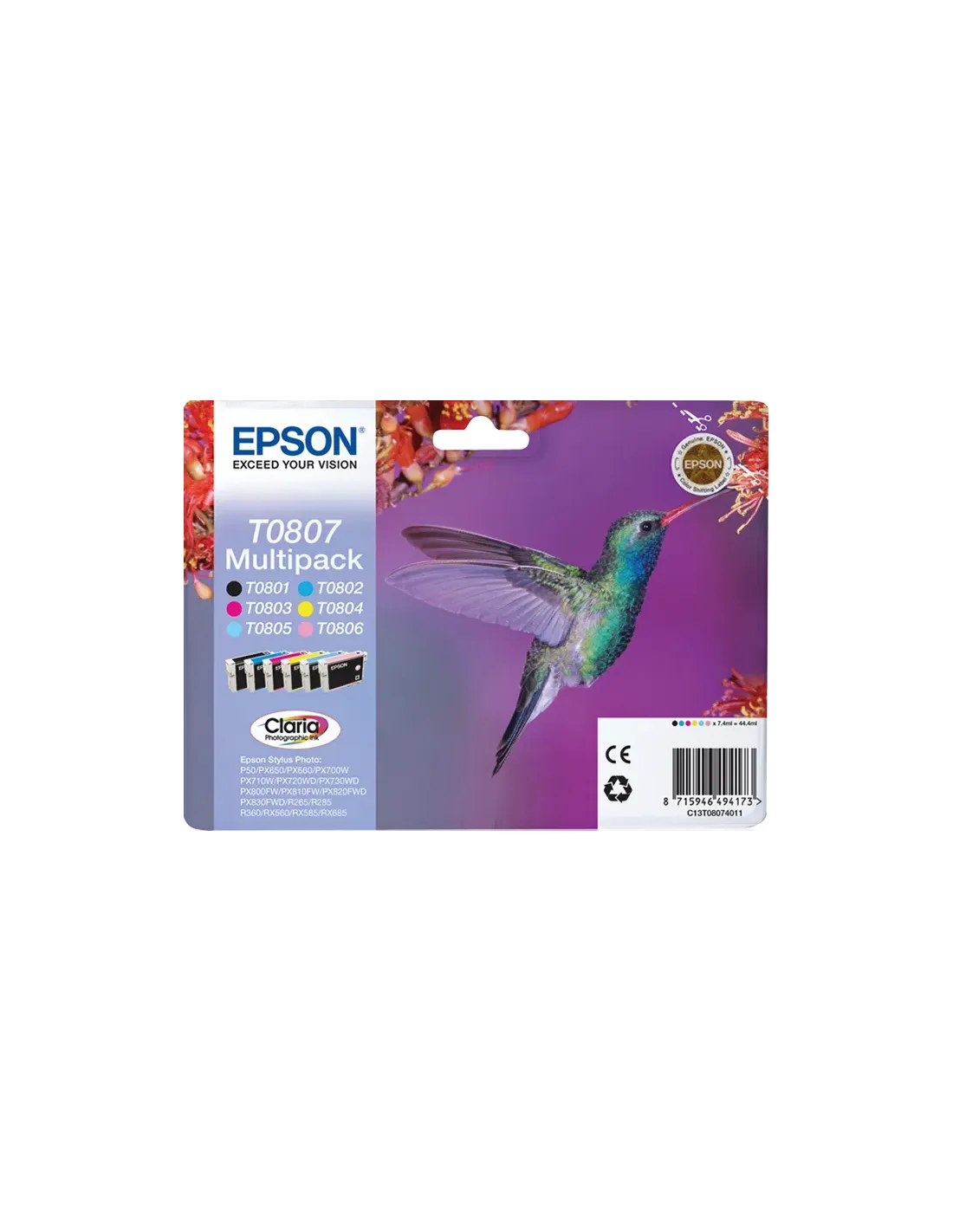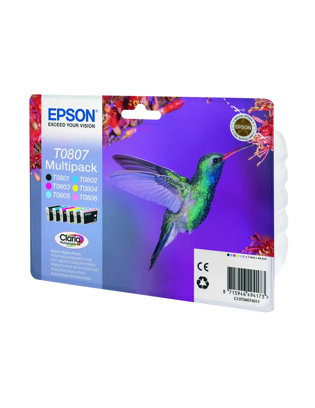 Epson Hummingbird Multipack T0807 6 colores, Negro, Cian, Cian claro, Magenta claro, Magenta, Amarillo, 1 pieza(s), Multipack