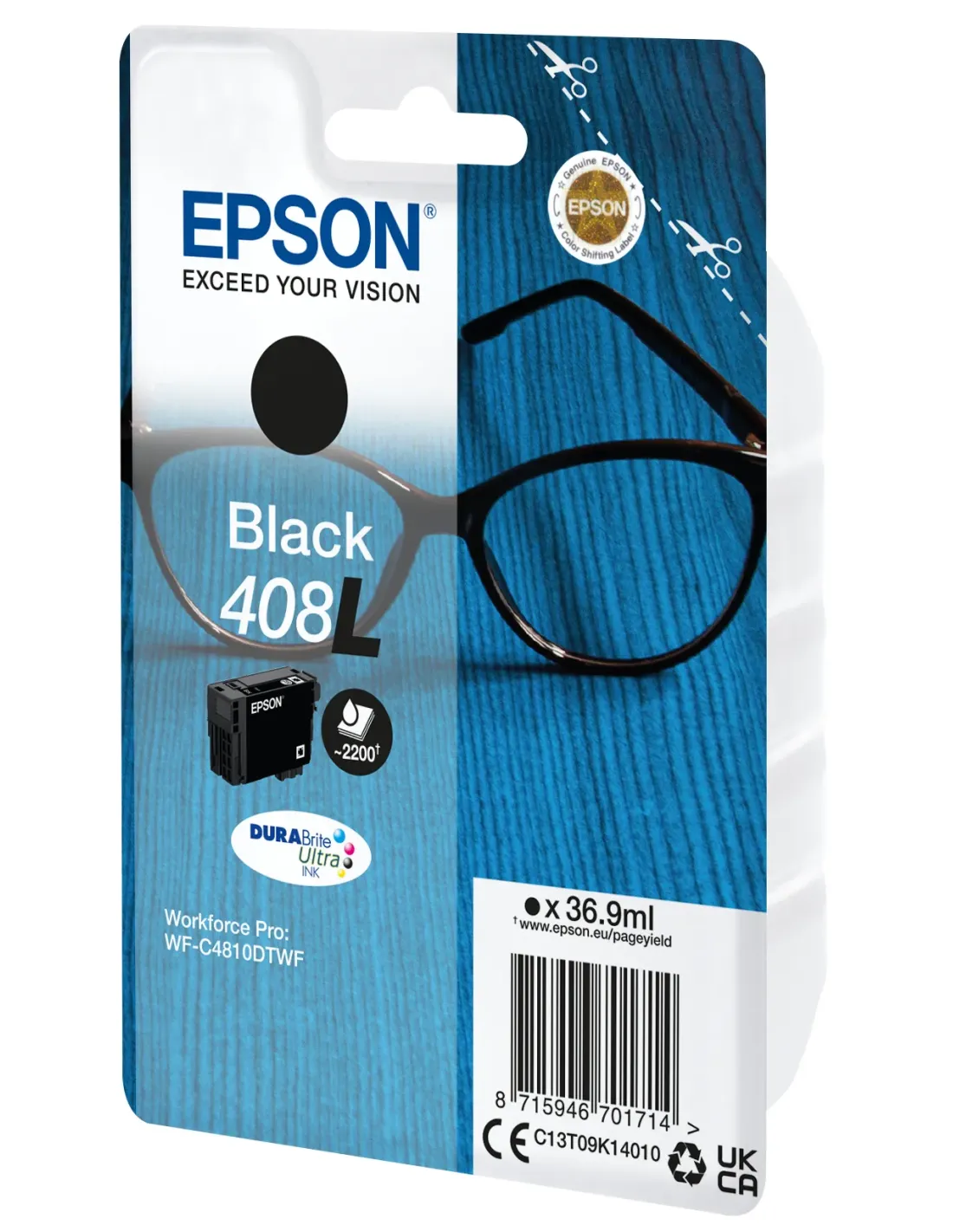 Epson Singlepack Black 408L DURABrite Ultra Ink, Rendimiento estándar, Negro, Tinta a base de pigmentos, 36,9 ml, 1 pieza(s), Pack individual