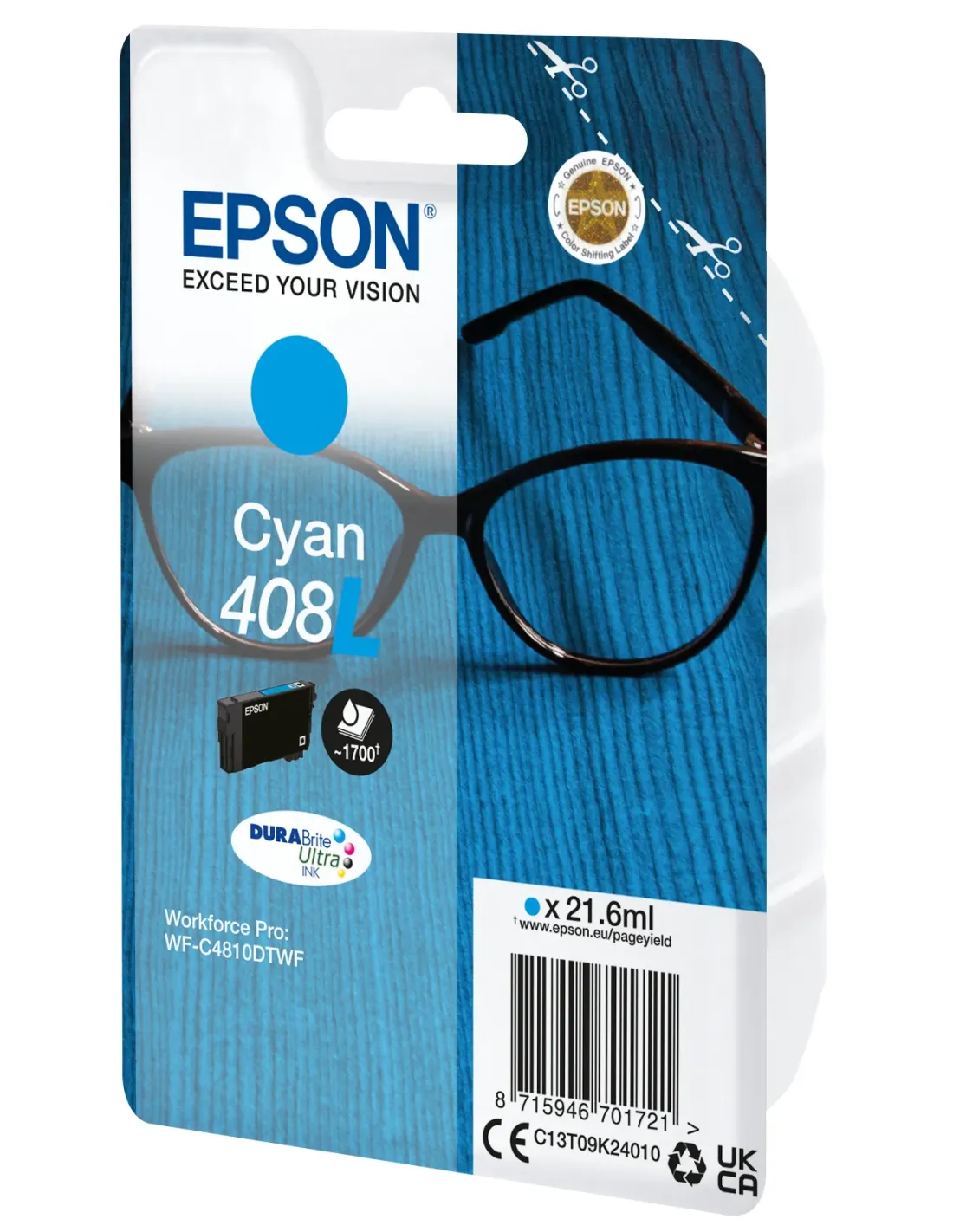 Epson Singlepack Cyan 408L DURABrite Ultra Ink, Alto rendimiento (XL), Cian, Tinta a base de pigmentos, 21,6 ml, 1 pieza(s)