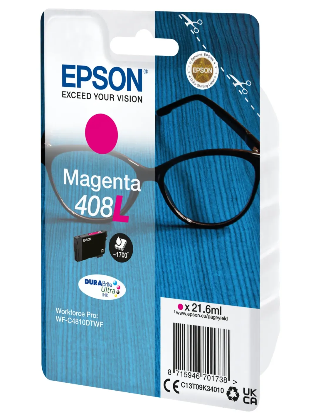 Epson Singlepack Magenta 408L DURABrite Ultra Ink, Alto rendimiento (XL), Magenta, Tinta a base de pigmentos, 21,6 ml, 1 pieza(s), Pack individual