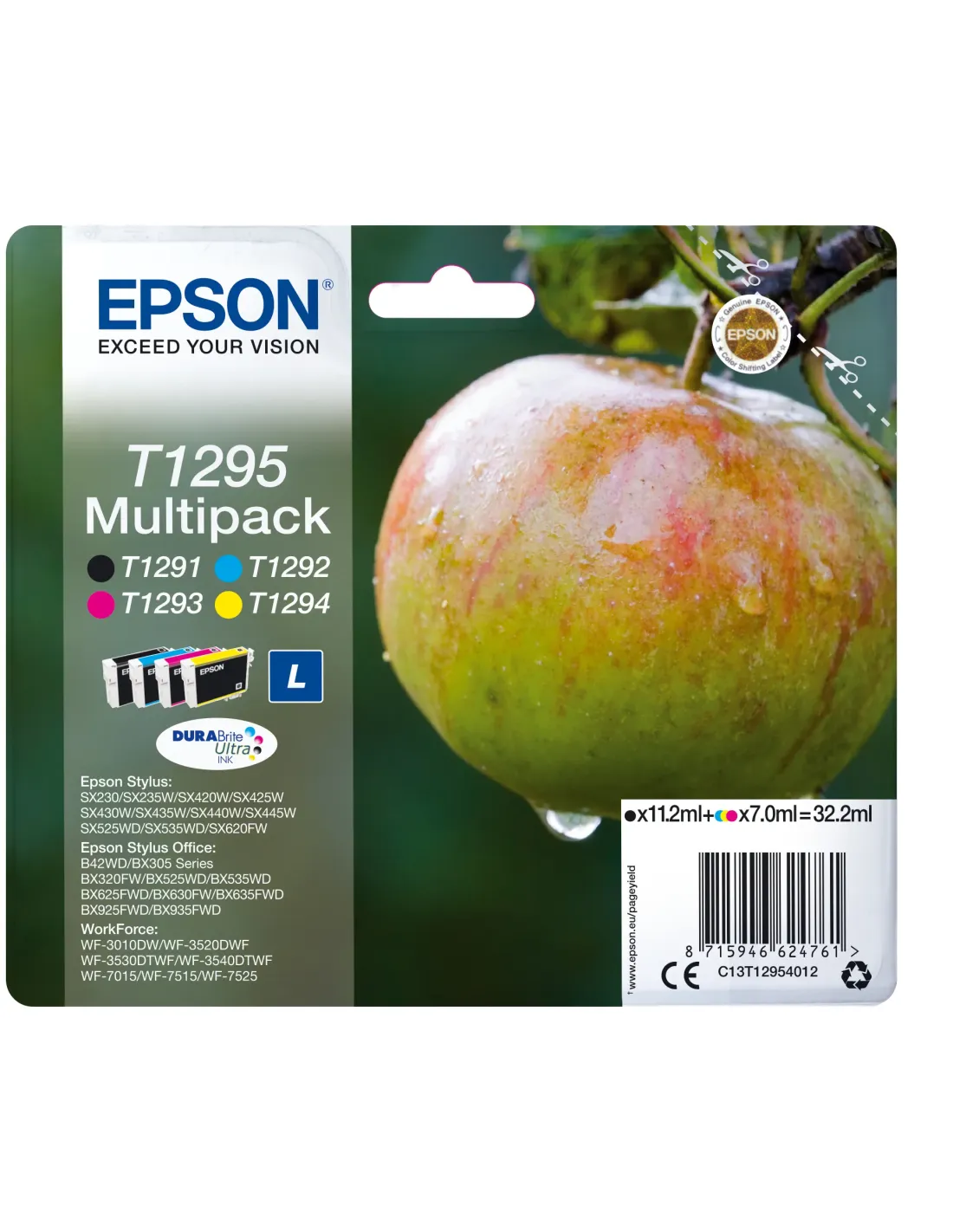 Epson Apple Multipack T1295 4 colores, Negro, Cian, Magenta, Amarillo, 11,2 ml, 7 ml, 1 pieza(s), Multipack