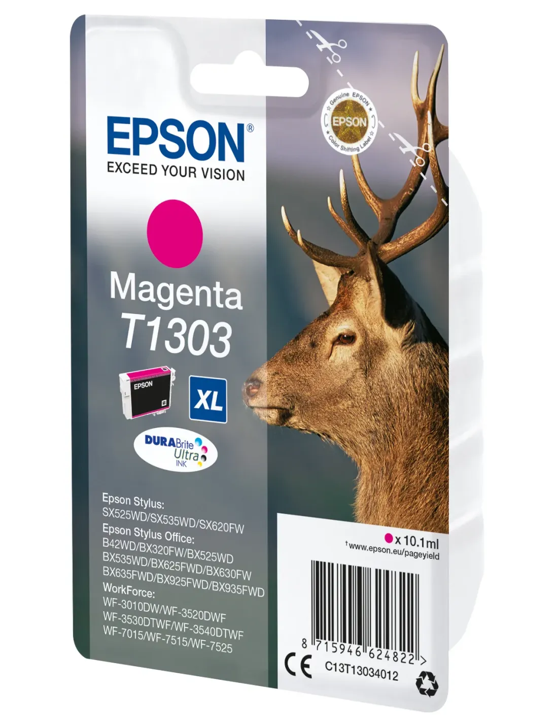 Epson Stag Cartucho T1303 magenta, Alto rendimiento (XL), Magenta, Tinta a base de pigmentos, 10,1 ml, 1 pieza(s), 600 páginas