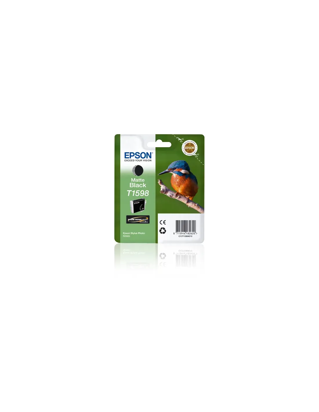 Descripción del producto Epson T1598 - negro mate - original - cartucho de tintaTipo de producto Cartucho de tintaCapacidad 17 mlColor de impresión Negro mateTecnología de impresión Chorro de tintaPropiedades del cartucho Epson UltraChrome Hi-Gloss2 InkRendimiento Hasta 800 páginasTipo de empaquetado BlísterCompatible con Stylus Photo R2000