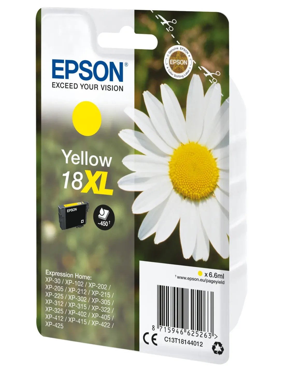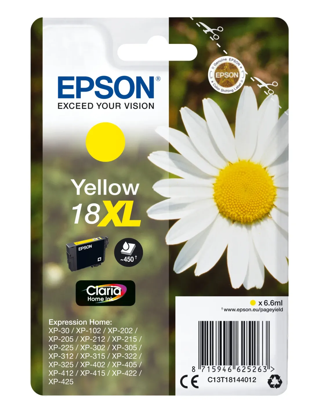 Epson Daisy Cartucho 18XL amarillo, Alto rendimiento (XL), Amarillo, Tinta a base de pigmentos, 6,6 ml, 1 pieza(s), 450 páginas