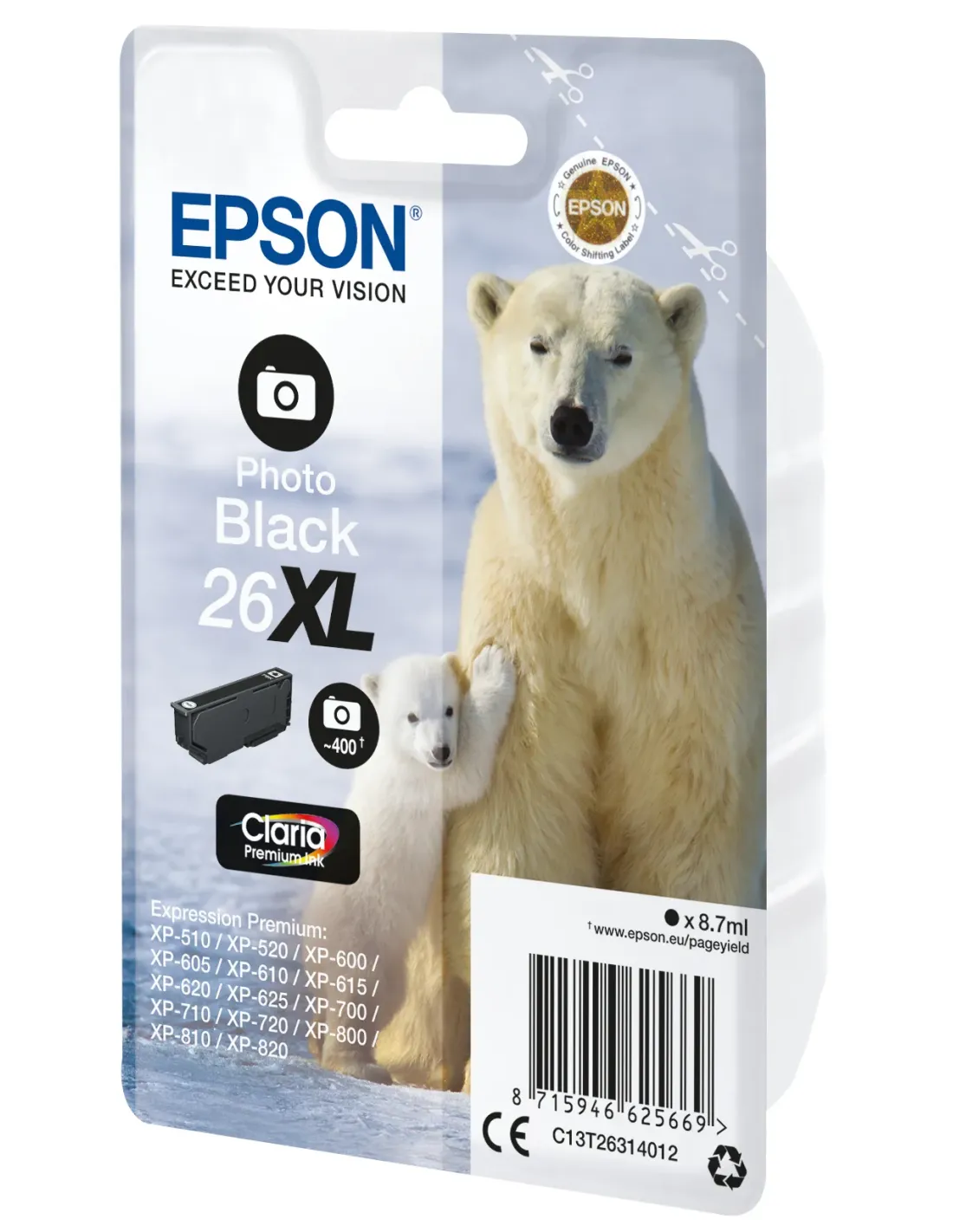 Epson Polar bear Cartucho 26XL negro foto, Alto rendimiento (XL), Foto negro, Tinta a base de colorante, 8,7 ml, 1 pieza(s), 400 páginas