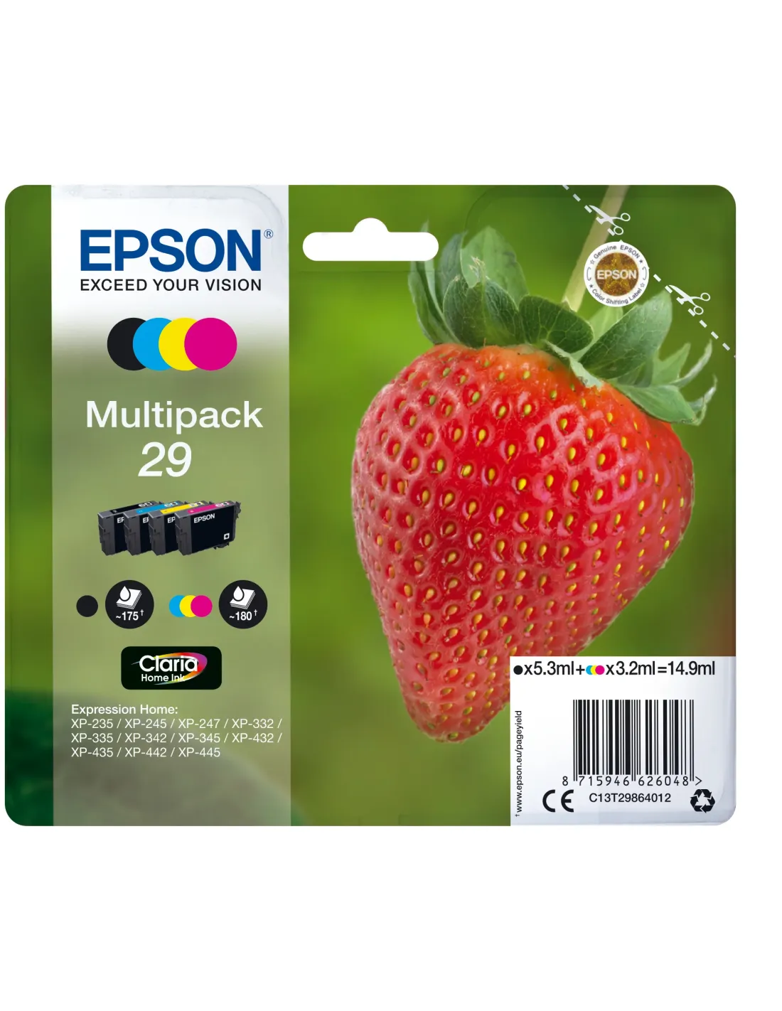 Epson Strawberry Multipack 4-colours 29 Claria Home Ink, Rendimiento estándar, Negro, Cian, Magenta, Amarillo, 5,3 ml, 3,2 ml, 1 pieza(s), 175 páginas
